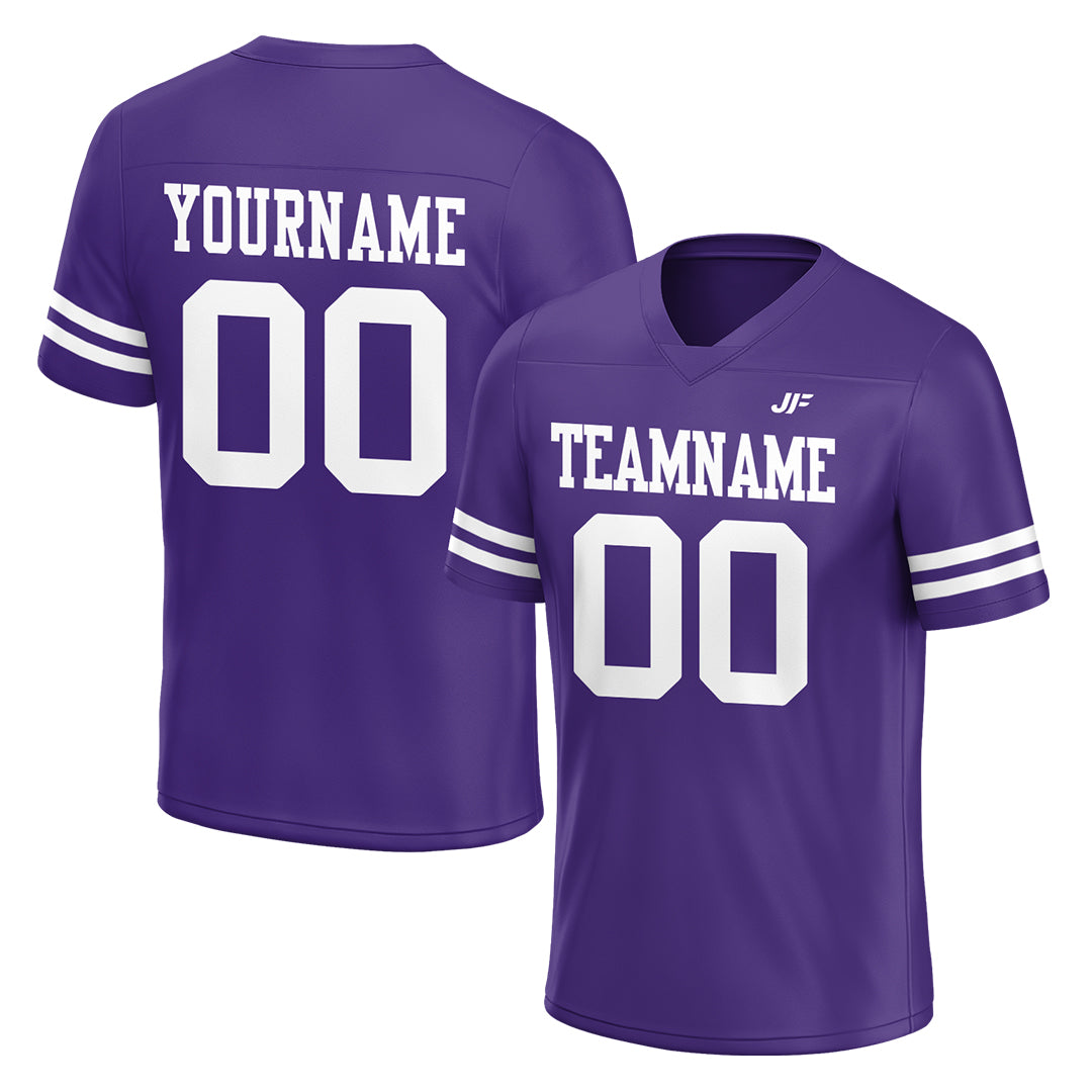 Football jerseys are more than uniforms, they symbolize team spirit, prompt athlete confidence, and awaken a sense of belonging in team supporters. Thanks to JerFit's custom purple football jersey selection, teams finally have a way to stand out on the field and came together as a style-conscious team. For schools, clubs, local leagues”.JerFit’s jerseys are long-lasting and fit the players just right. Oh, let’s just jump in and see a custom purple football jersey by JerFitt is the perfect choice for athletes who want to get noticed!