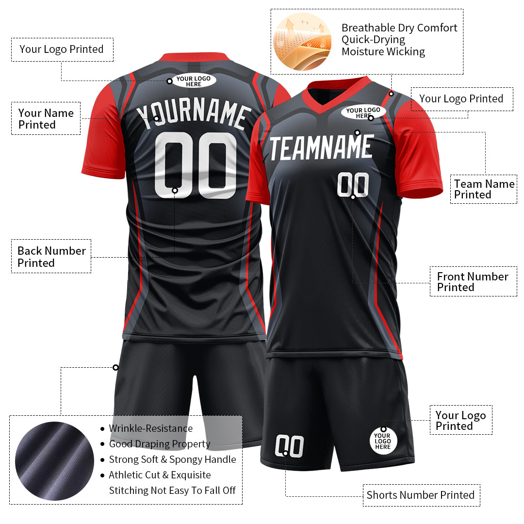 Custom Black Red Split Fashion Soccer Uniform Training Outfit Sportswear Jersey