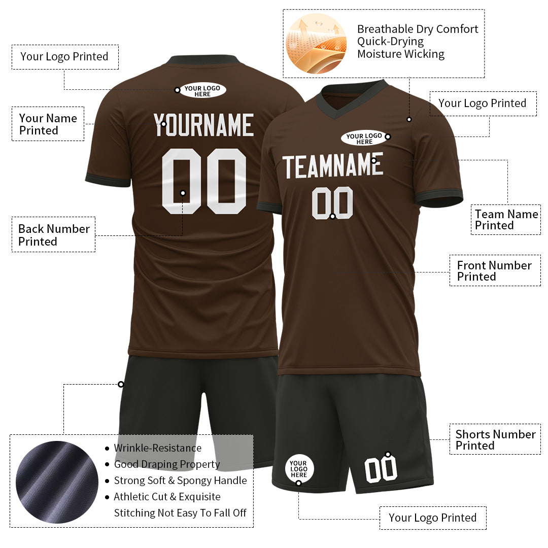 Personalized Brown Soccer Team UniformIntroducing our exceptional soccer uniform that Varied latest designed pattern styles, unique collar design, functionality, offering a perfect fit for every member of your team. With this high-performance apparel, you can play like a pro while exuding confidence and style....- $28.99