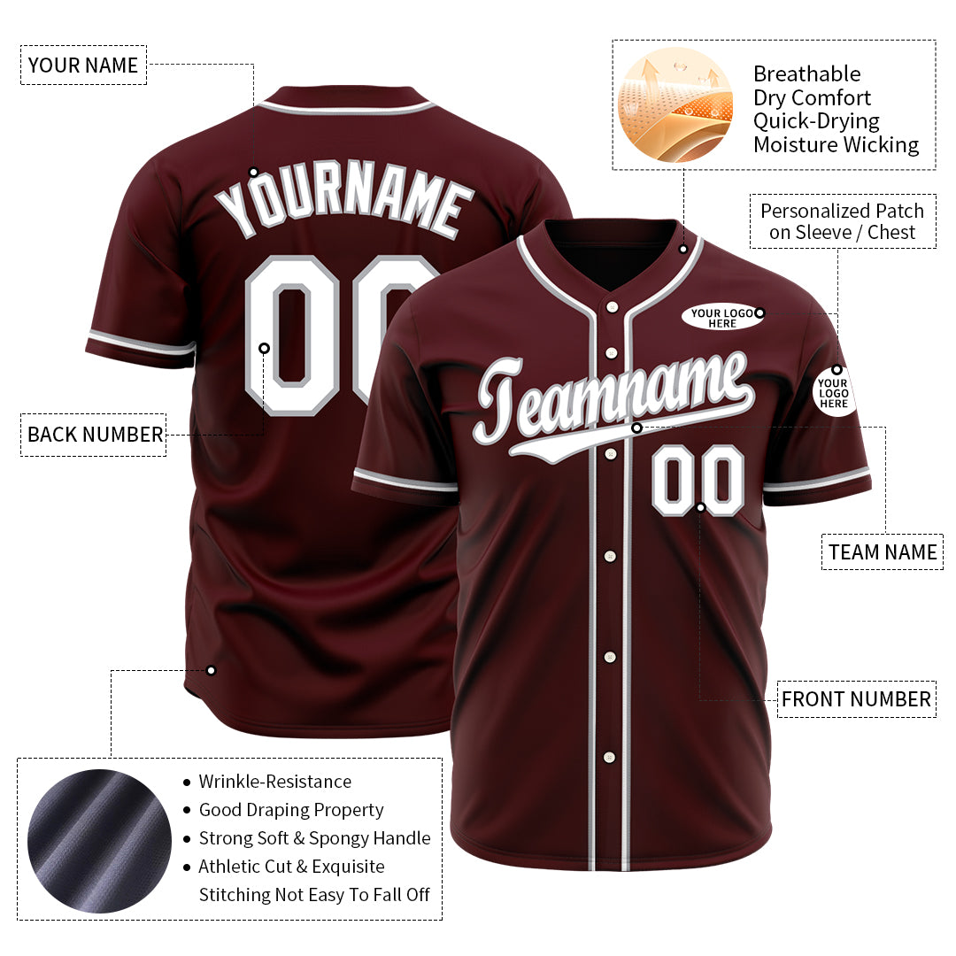 Custom Gradient Burgundy Gold Baseball Jersey Full Button Down Fans Special Edition Authentic Shirt