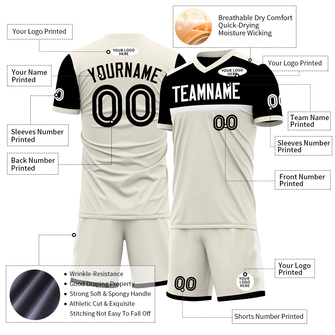 Personalized Cream Soccer Team UniformIntroducing our exceptional soccer uniform that Varied latest designed pattern styles, unique collar design, functionality, offering a perfect fit for every member of your team. With this high-performance apparel, you can play like a pro while exuding confidence and style....- $28.99