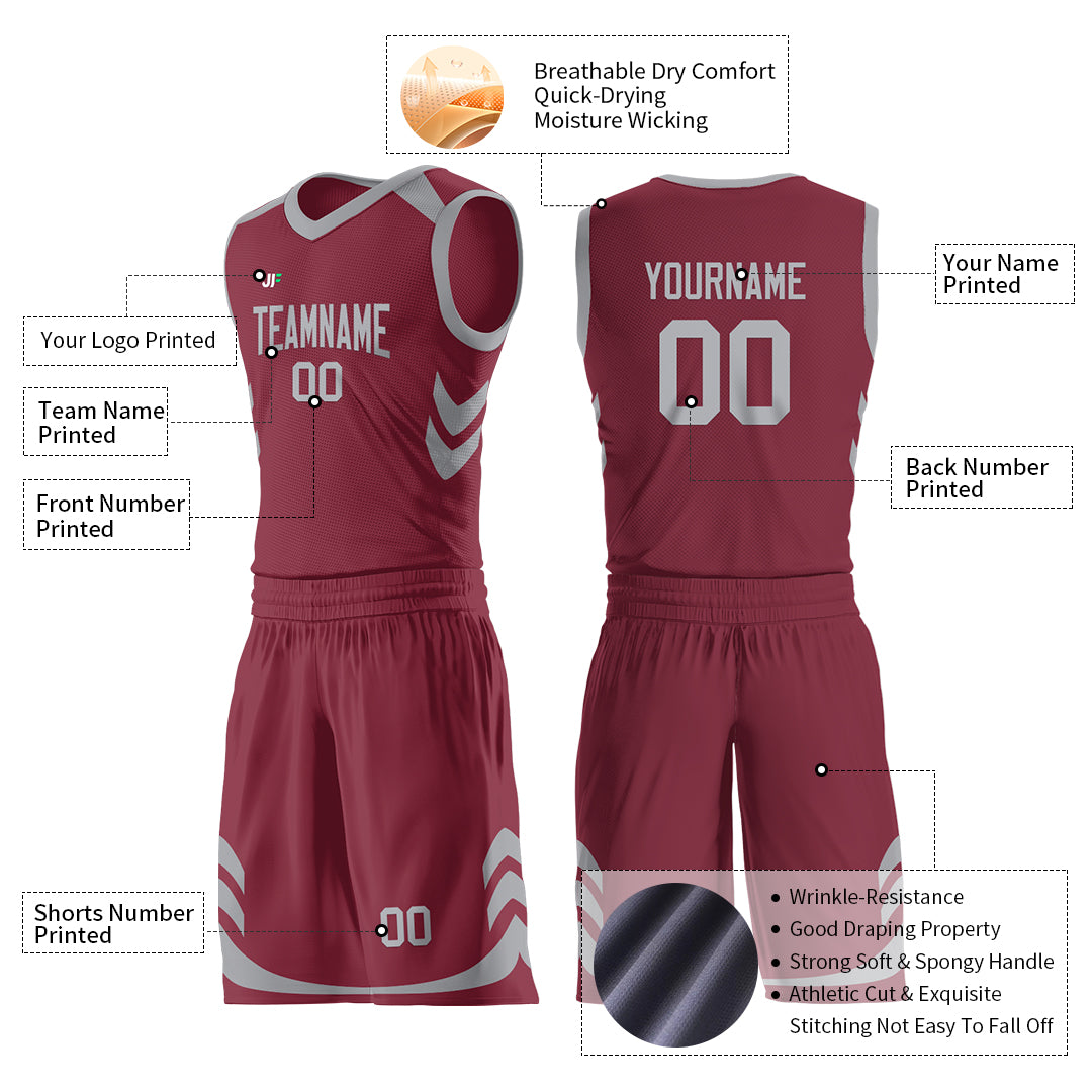 Our custom crimson basketball uniform is an absolute powerhouse. The jersey, fashioned from premium fabric, is not only built to last but also offers a plush comfort. Its vibrant crimson shade commands attention and instills a sense of team pride. You can customize the jersey with your team's crest, name, or a bespoke design. The text's typeface and dimensions are fully at your disposal for a personalized touch. The sleeves and collar present an array of style variants. The shorts, crafted from excellent material, feature an adjustable waistband and diverse length options. There's a wide selection of sizes for both the jersey and shorts. This uniform is the key to forging a cohesive and stylish basketball team identity. It's perfect for the heat of the game, intense practices, and even for fans to flaunt their allegiance. Whether you're on the court or out and about, this custom crimson basketball uniform combines unbeatable quality, limitless customization, and a fashion-forward allure. It's the ultimate choice for basketball aficionados.