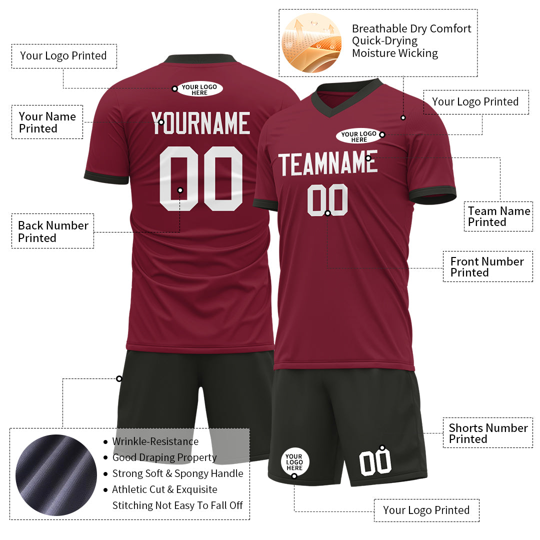 Personalized Crimson Soccer Team UniformIntroducing our exceptional soccer uniform that Varied latest designed pattern styles, unique collar design, functionality, offering a perfect fit for every member of your team. With this high-performance apparel, you can play like a pro while exuding confidence and style....- $28.99
