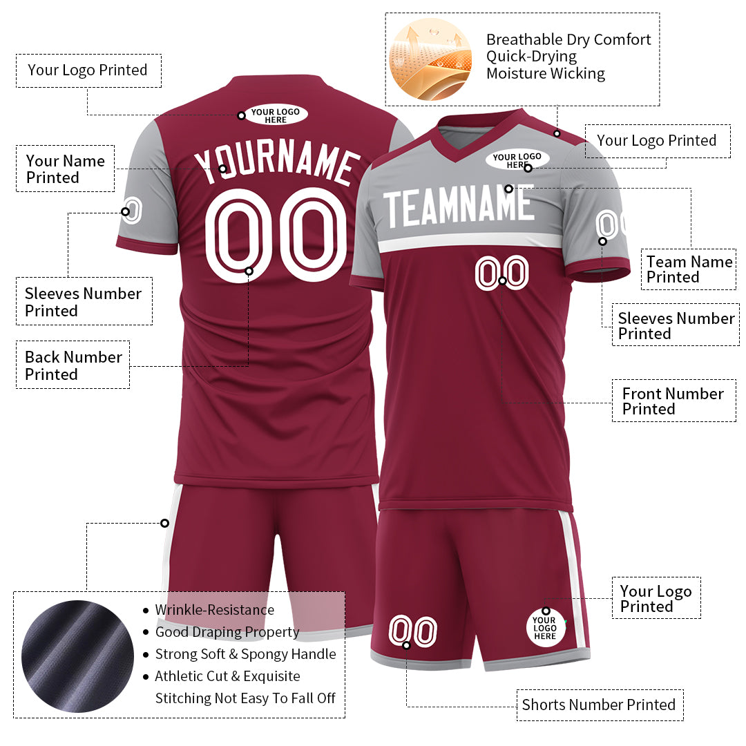Personalized Crimson Soccer Team UniformIntroducing our exceptional soccer uniform that Varied latest designed pattern styles, unique collar design, functionality, offering a perfect fit for every member of your team. With this high-performance apparel, you can play like a pro while exuding confidence and style....- $28.99