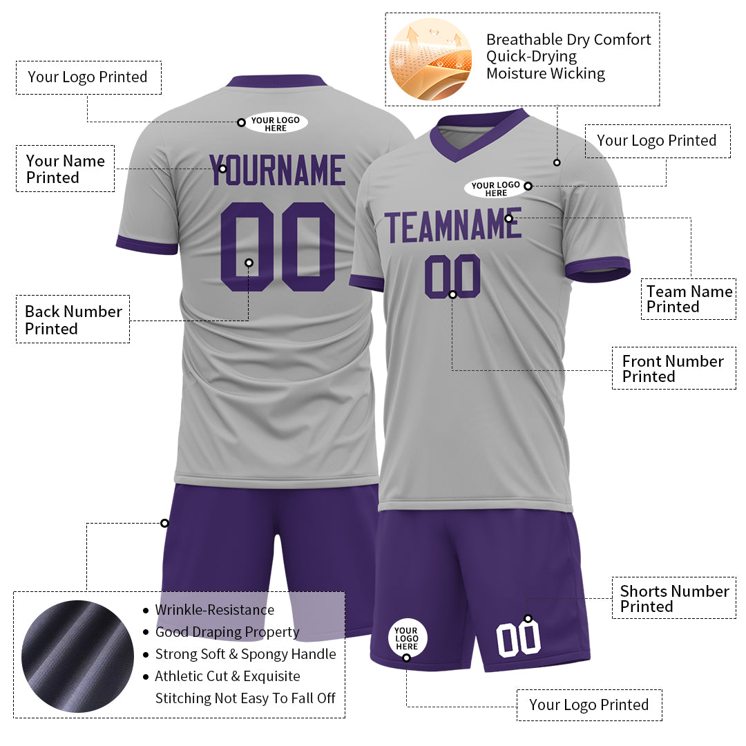 Our custom gray soccer uniform is an excellent choice that combines both style and functionality for soccer enthusiasts.