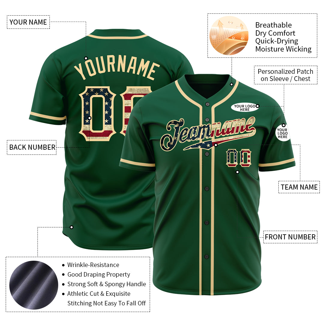 Custom Green National USA Flag Two Tone Shirts Authentic Vintage Baseball Jersey