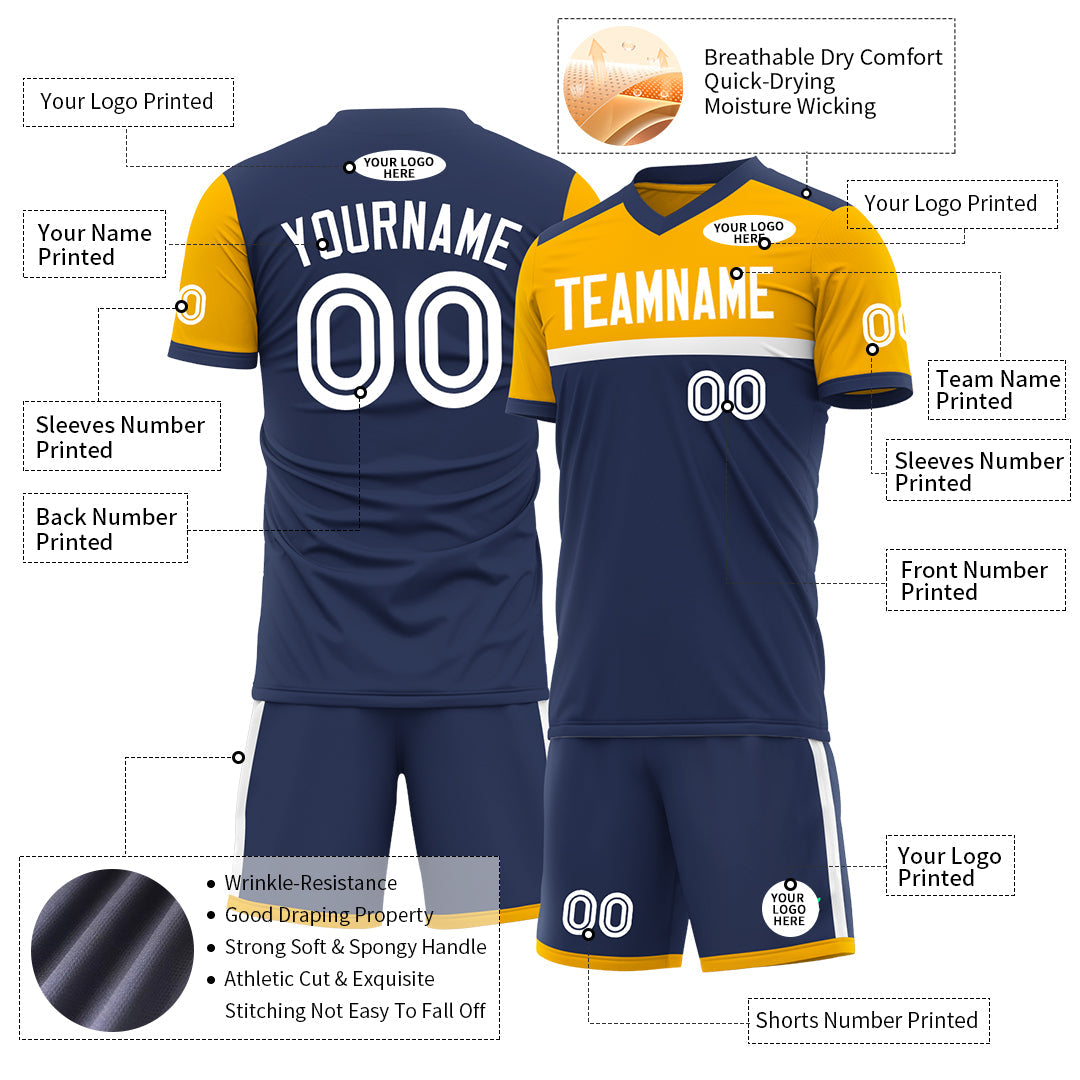 Personalized Navy Soccer Team UniformIntroducing our exceptional soccer uniform that Varied latest designed pattern styles, unique collar design, functionality, offering a perfect fit for every member of your team. With this high-performance apparel, you can play like a pro while exuding confidence and style....- $28.99