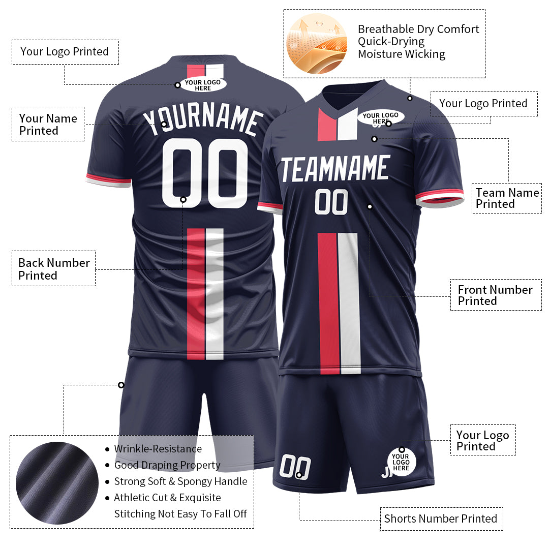 Personalized Navy Soccer Team UniformIntroducing our exceptional soccer uniform that Varied latest designed pattern styles, unique collar design, functionality, offering a perfect fit for every member of your team. With this high-performance apparel, you can play like a pro while exuding confidence and style....- $28.99