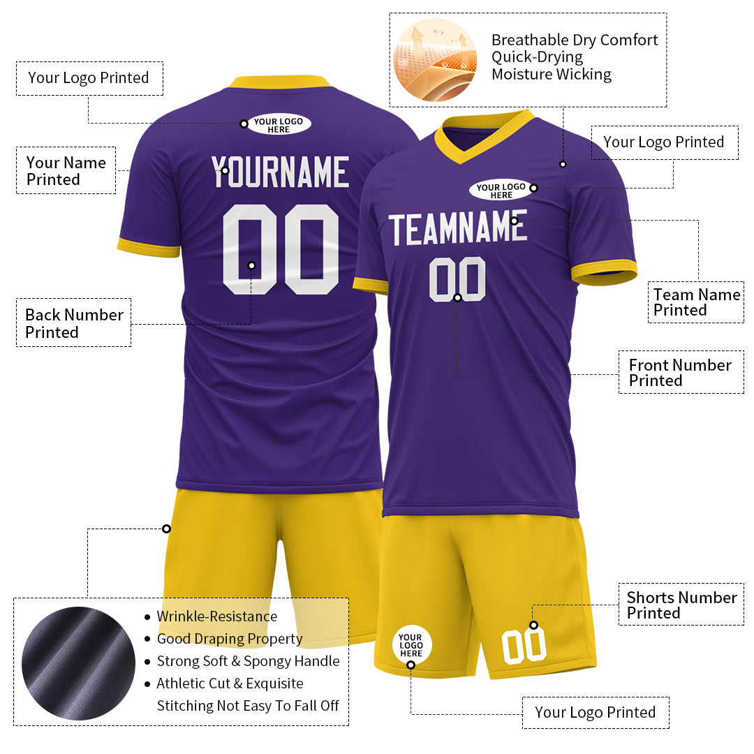 Personalized Purple Soccer UniformIntroducing our exceptional soccer uniform that Varied latest designed pattern styles, unique collar design, functionality, offering a perfect fit for every member of your team. With this high-performance apparel, you can play like a pro while exuding confidence and style. Create...- $28.99