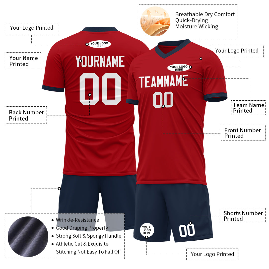 Personalized Red Soccer Team UniformIntroducing our exceptional soccer uniform that Varied latest designed pattern styles, unique collar design, functionality, offering a perfect fit for every member of your team. With this high-performance apparel, you can play like a pro while exuding confidence and style....- $28.99