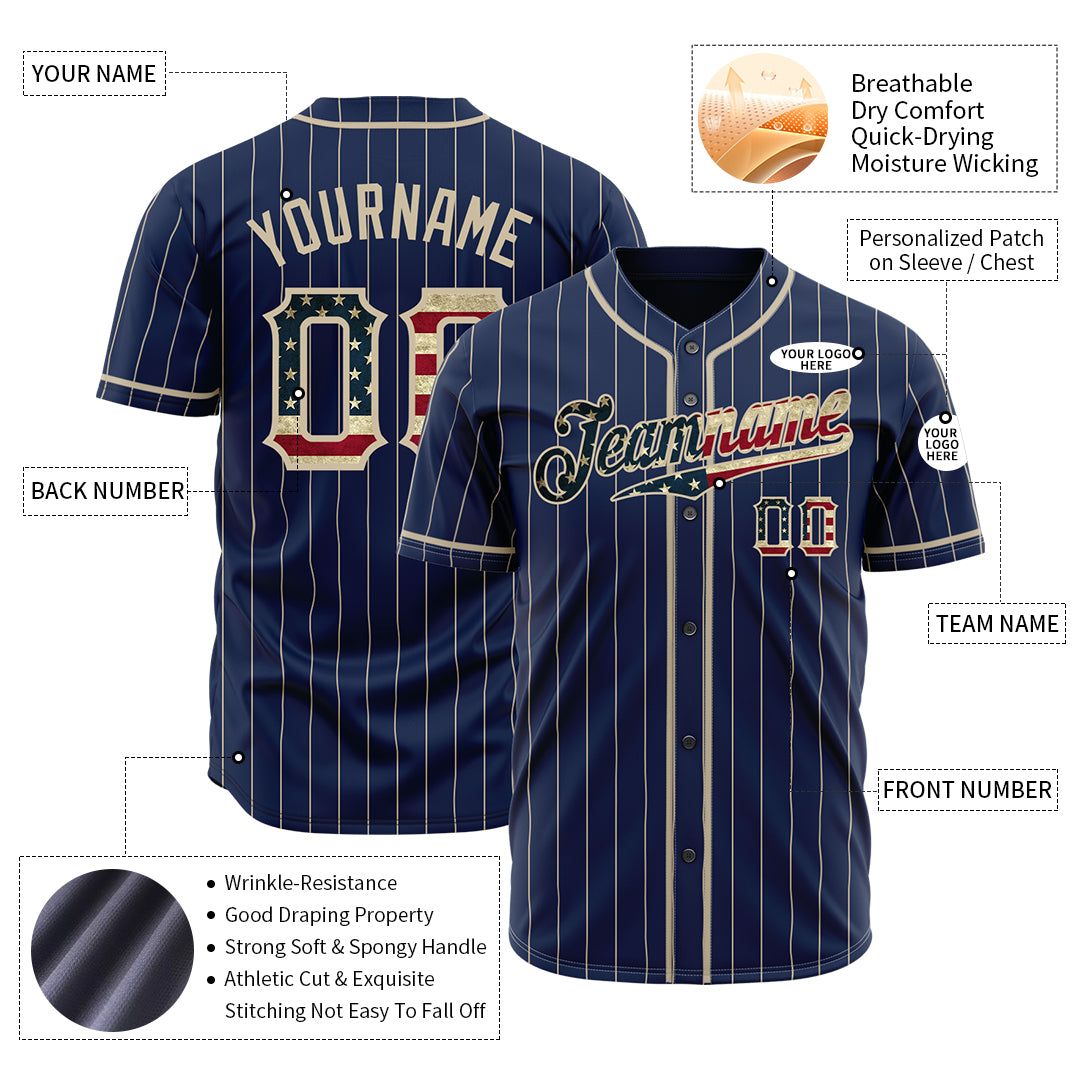 Personalized Royal USA Flag Baseball Jersey Online Create your own design: adding your name, Number, Team logo, or special graphics, With intricate embroidery, Every stitch is carefully embroidered for a professional and eye-catching look. Made from high-quality materials, our jersey offers comfort and durability...- $28.99