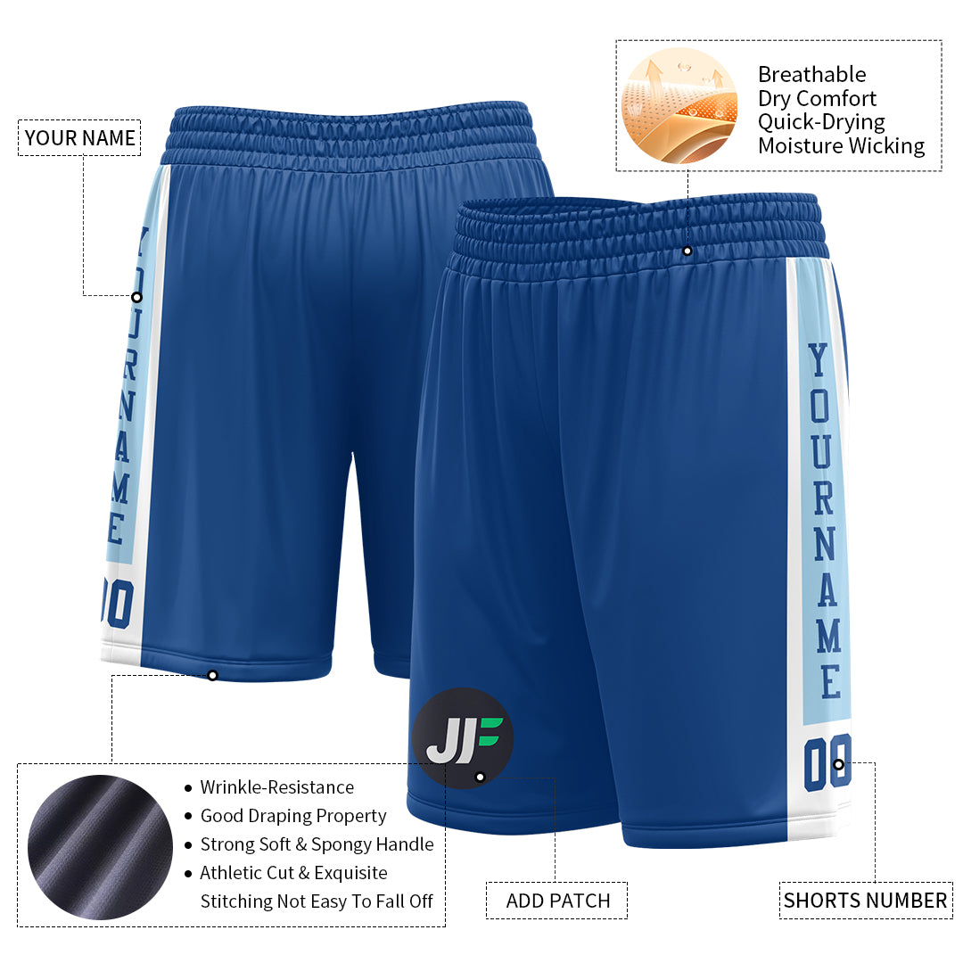 Our custom royal basketball shorts are a great addition to any team's apparel. They're made from high-quality materials that offer durability and flexibility. The royal color gives them a regal and stylish appearance. You can customize them with your team's logo or a unique pattern. There are options to adjust the size and style of the customization, allowing for a personalized touch. These shorts provide a comfortable fit, enabling players to move freely on the court. They're not only suitable for game days but also for practice sessions. Fans can also wear them to show their support. With their combination of quality, customization, and good looks, these custom royal basketball shorts are a must-have for basketball enthusiasts.