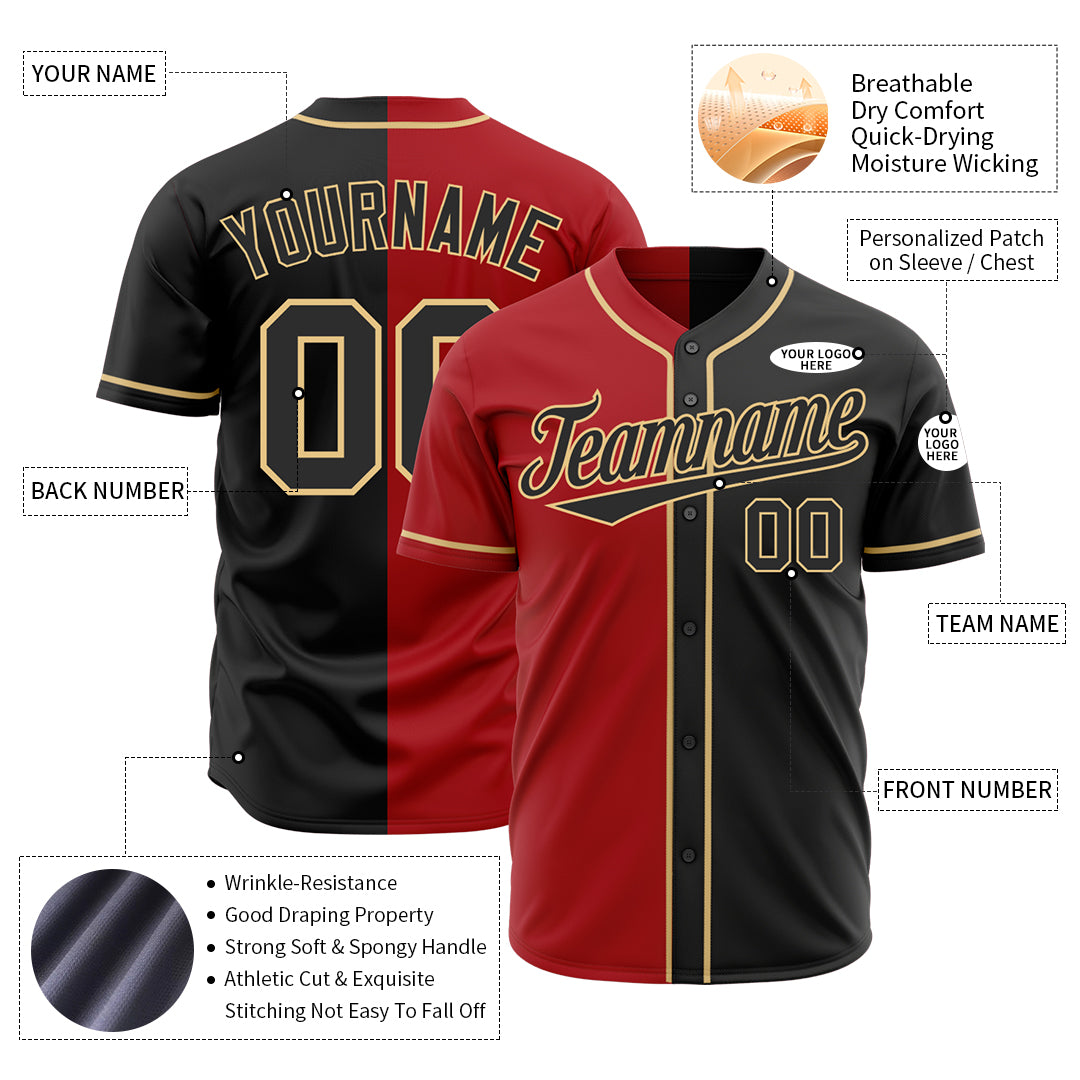 Custom Split Fashion Authentic Baseball Jersey Online Create your own design: adding your name, Number, Team logo, or special graphics, With intricate embroidery, Every stitch is carefully embroidered for a professional and eye-catching look. Made from high-quality materials, our jersey offers comfort and durability...- $28.99
