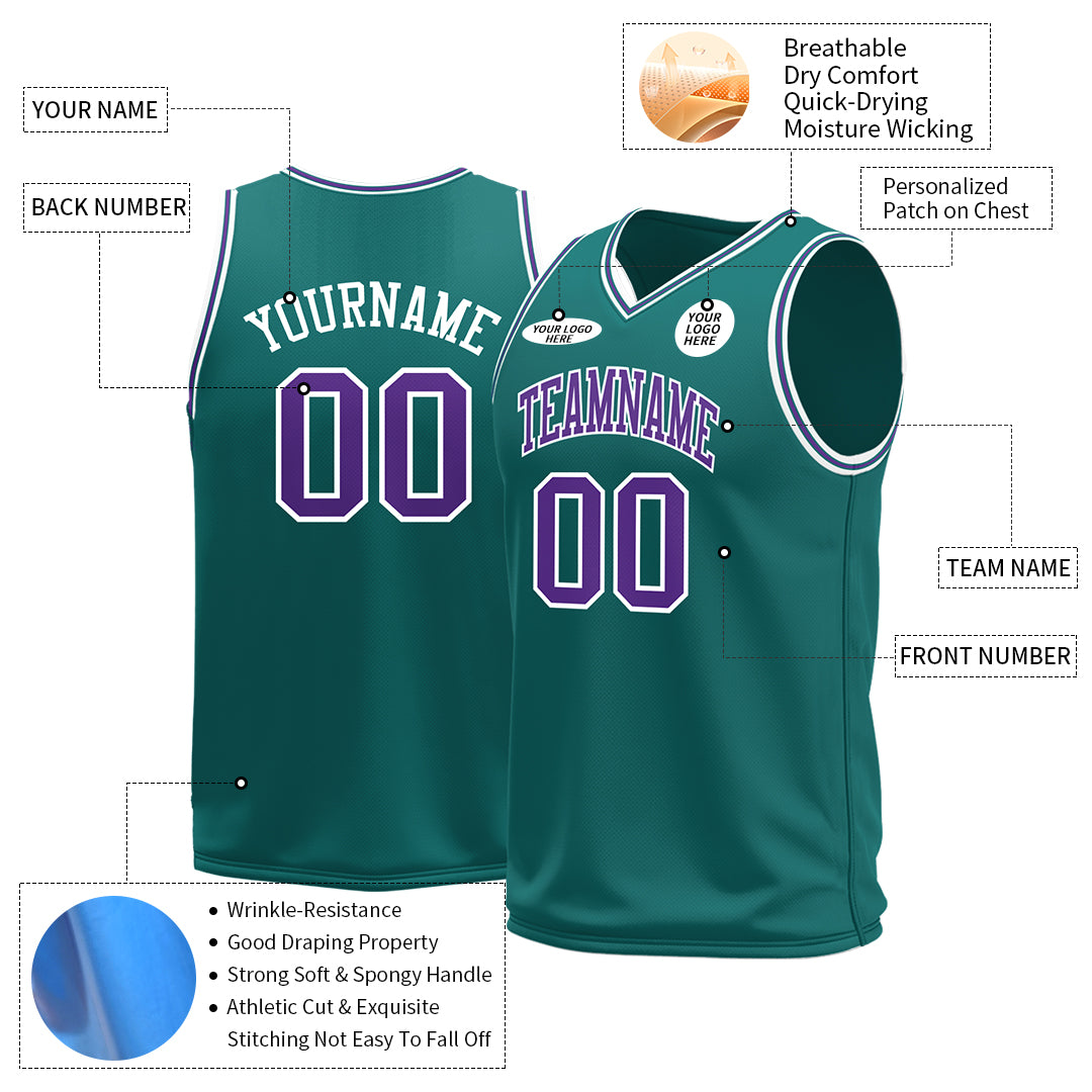 Our custom teal basketball jersey is an excellent pick.Made from premium fabric, it's durable enough to withstand the fast-paced action on the basketball court, like quick drives, sharp cuts, and high jumps. At the same time, it provides a comfortable wearing experience. The teal color makes it stand out with a cool and distinctive look.