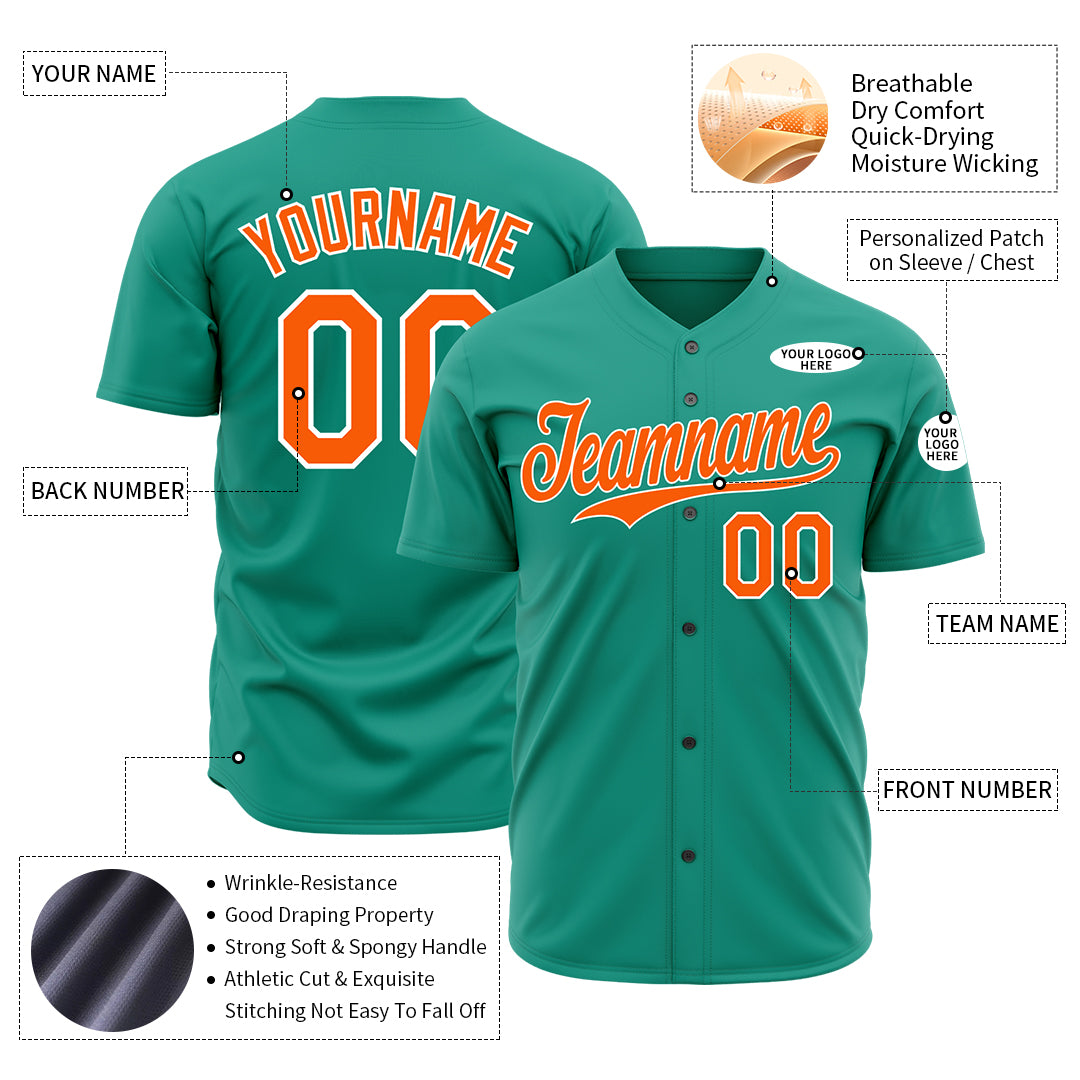 Custom Aqua Baseball Jersey Authentic Hip Hop Button Down Vintage Shirt