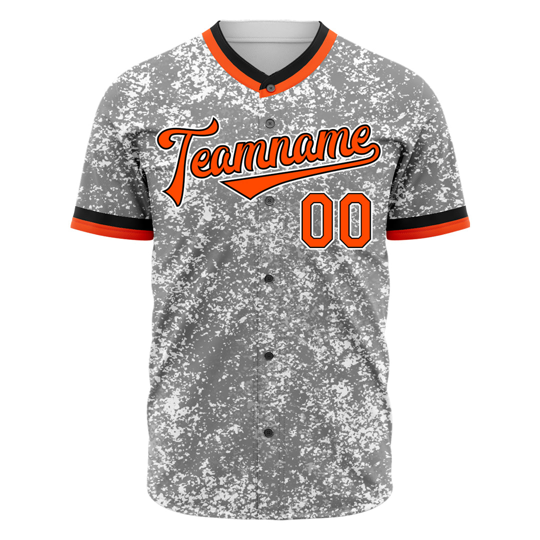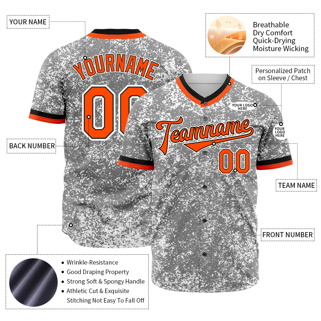 Custom Arctic Camouflage Personalized Orange Font Baseball Jersey Full Button Down Authentic Shirts