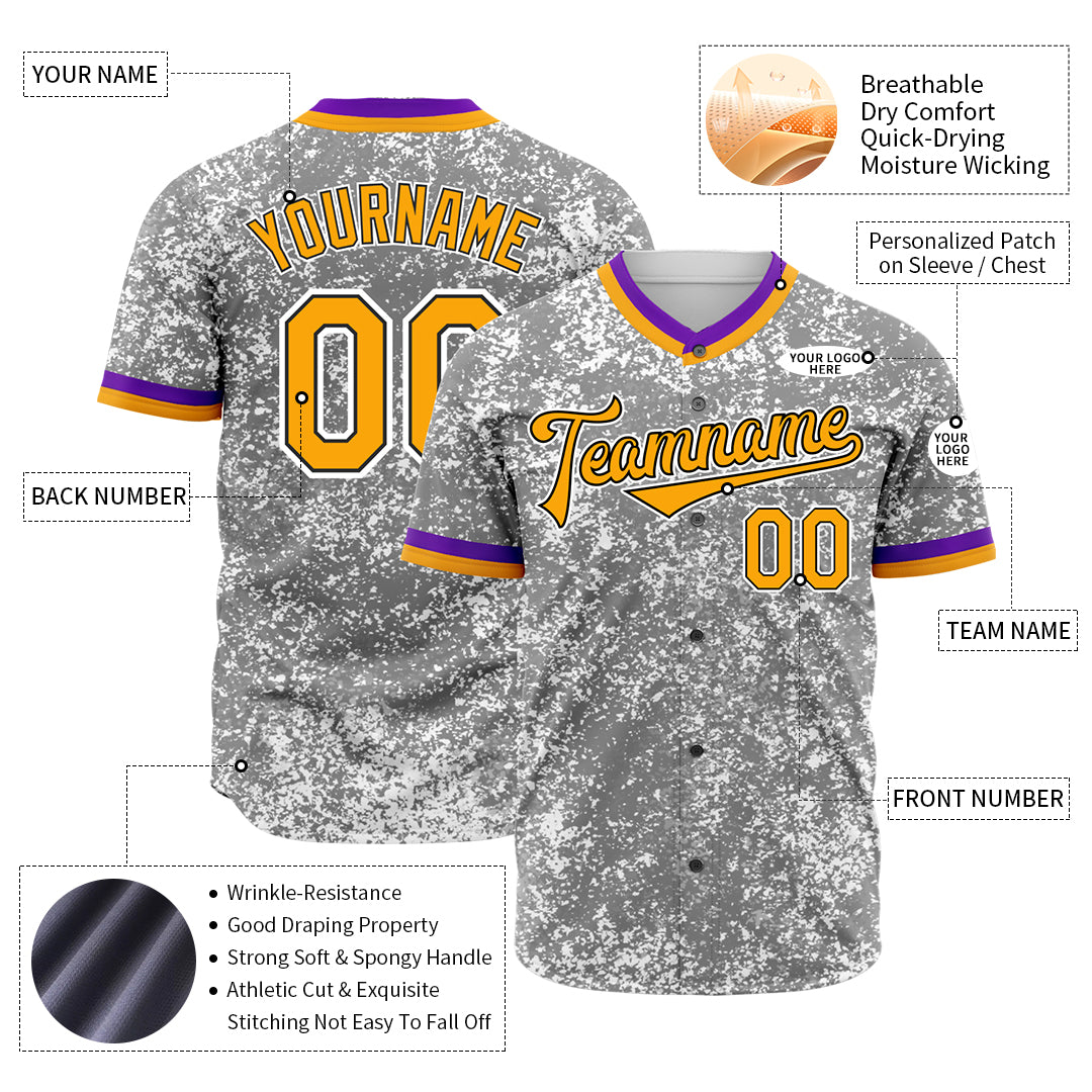 Custom Arctic Camouflage Personalized Yellow Font Baseball Jersey Full Button Down Authentic Shirts