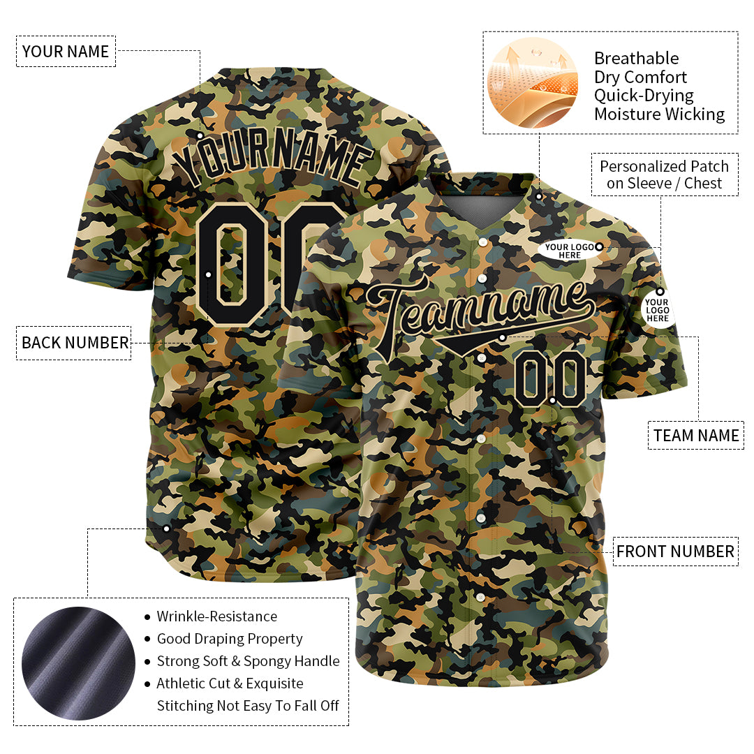 Custom Army Camo Baseball Jersey Full Button Down Fans Special Edition Authentic Shirt