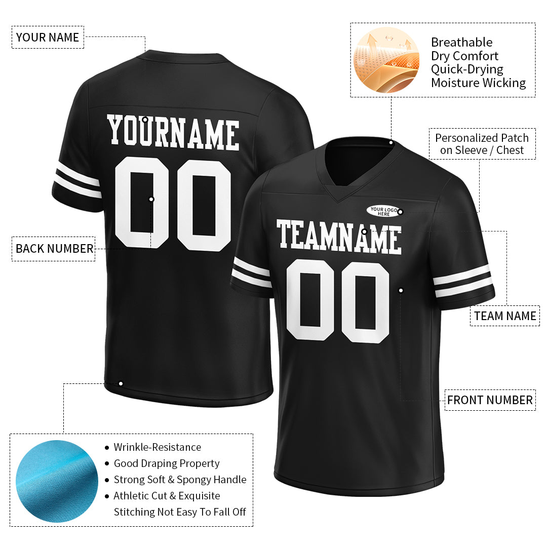Personalized Black Football Jersey for Men Women Youth