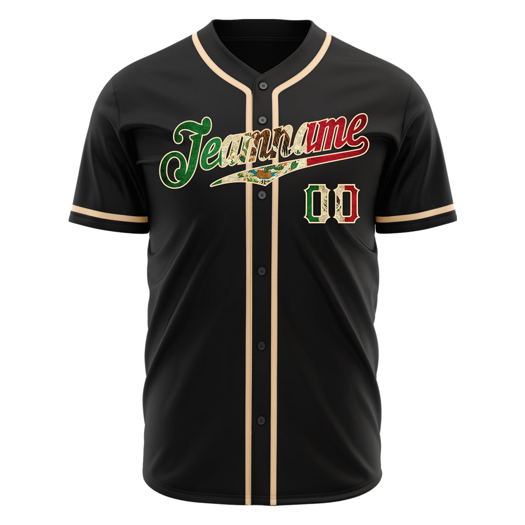 Personalized Black Mexican Flag Baseball Jersey Cheap