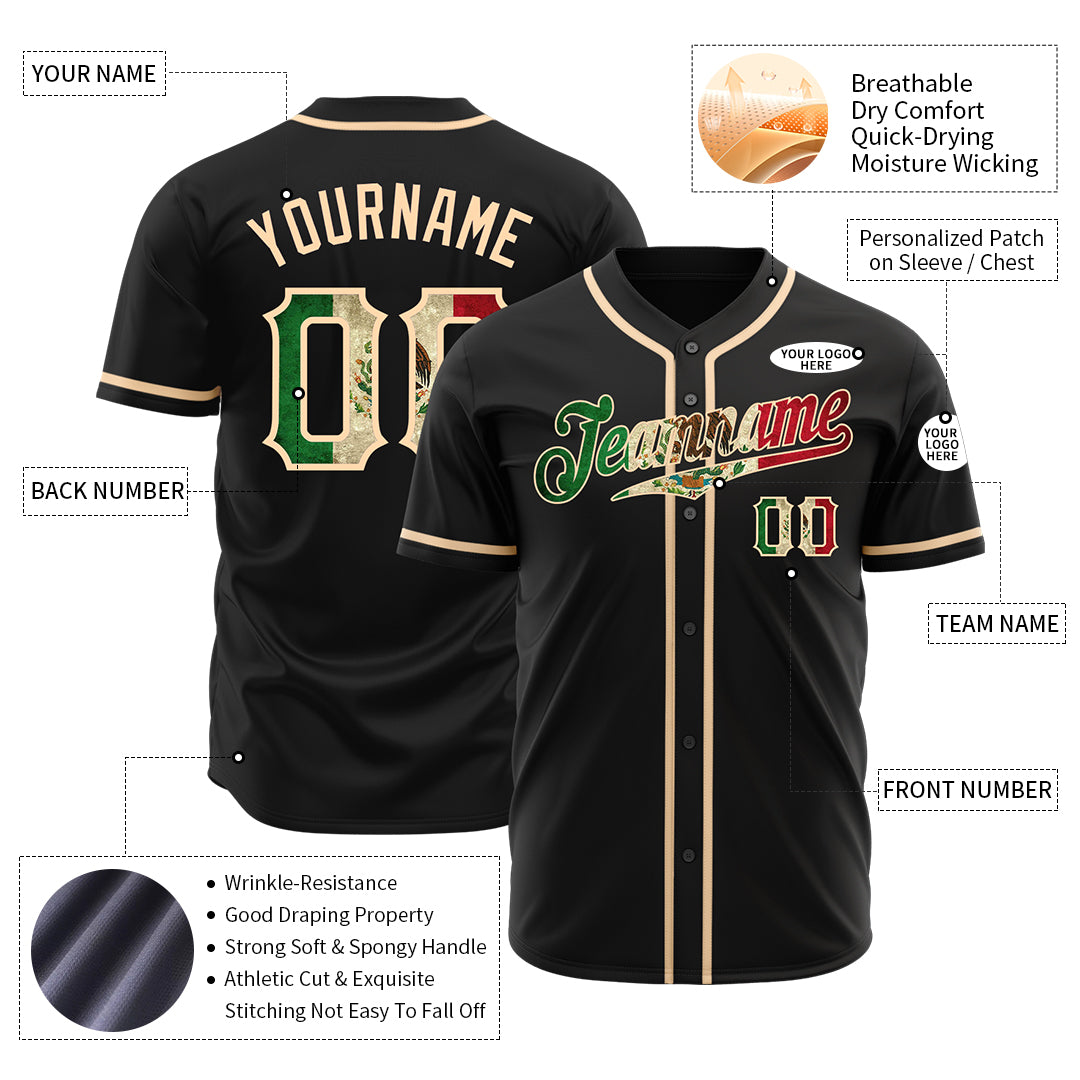 Custom Black Mexican Flag Fans Special Edition Authentic Vintage Baseball Jersey