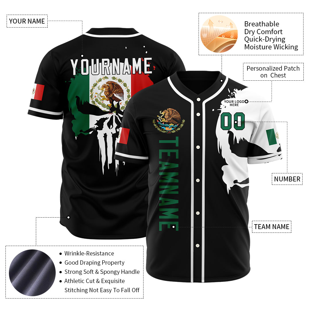 Personalized Black Mexican Flag Baseball Jersey Shirt