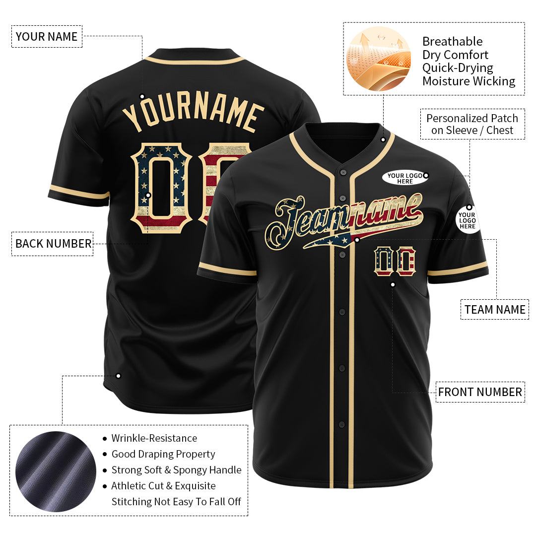 Custom Black National USA Flag Fans Special Edition Authentic Vintage Baseball Jersey