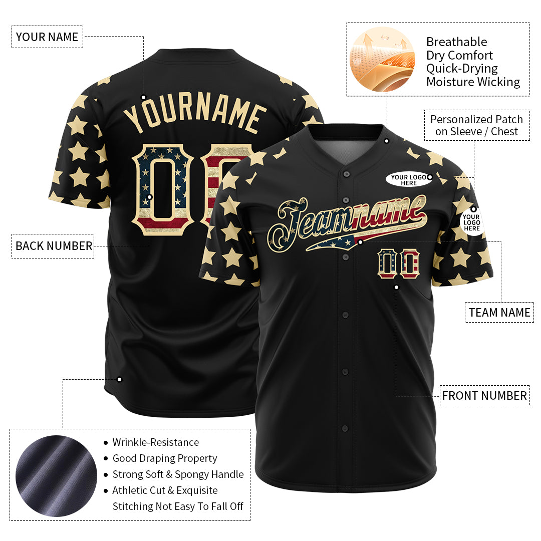 Custom Black National USA Flag Two Tone Shirts Authentic Vintage Baseball Jersey