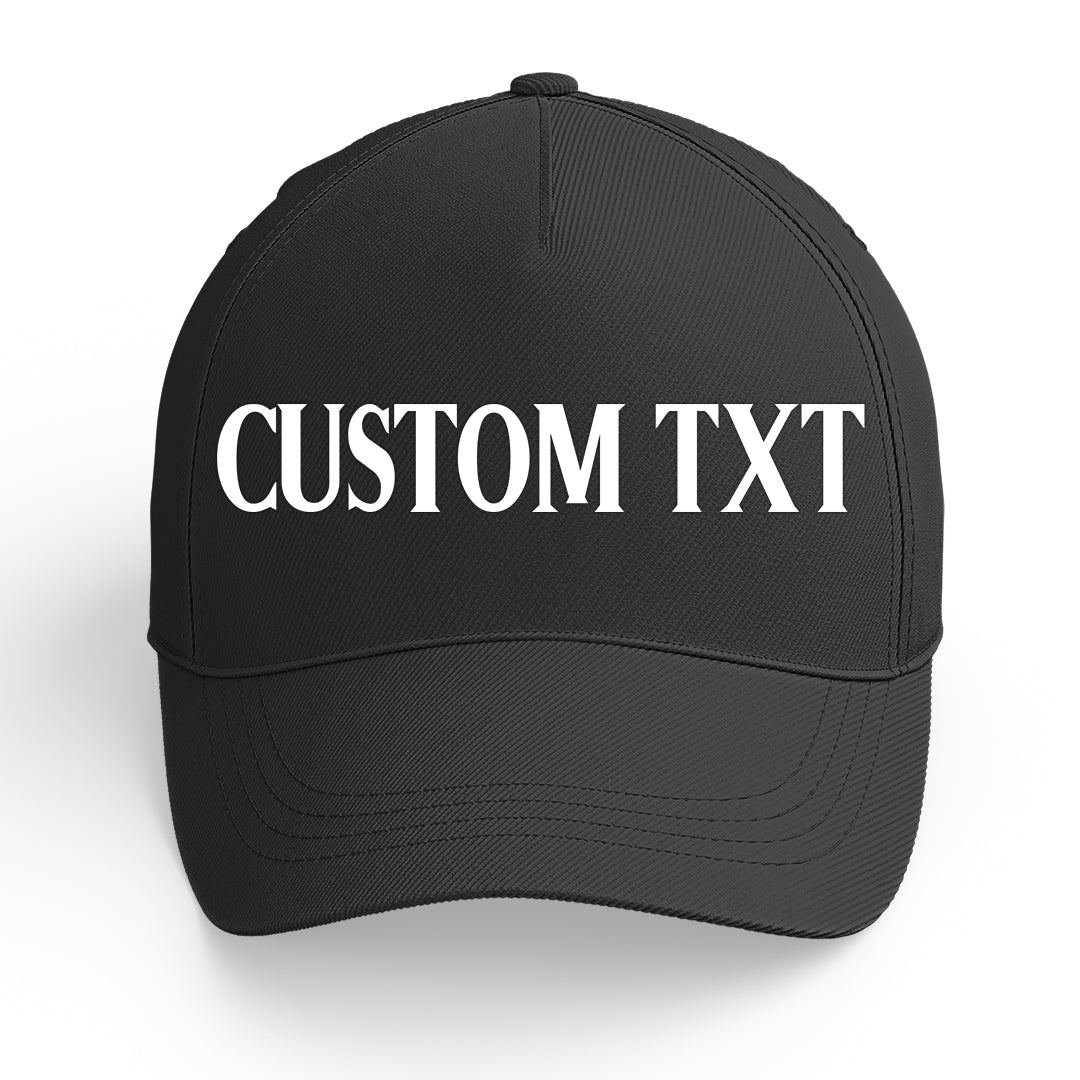 Custom Black Print Logo Text Adjustable Snapback Cotton Twill Hat