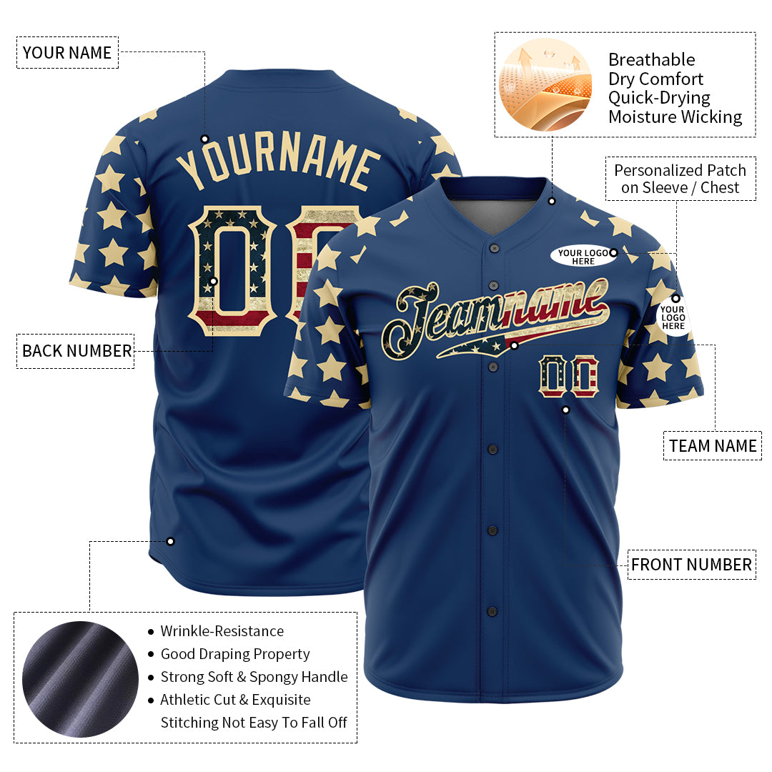 Custom Blue National USA Flag Two Tone Shirts Authentic Vintage Baseball Jersey