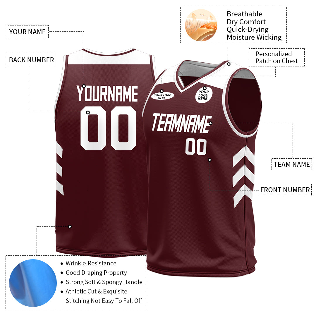 Personalized Burgundy Basketball Jersey Sports Shirt