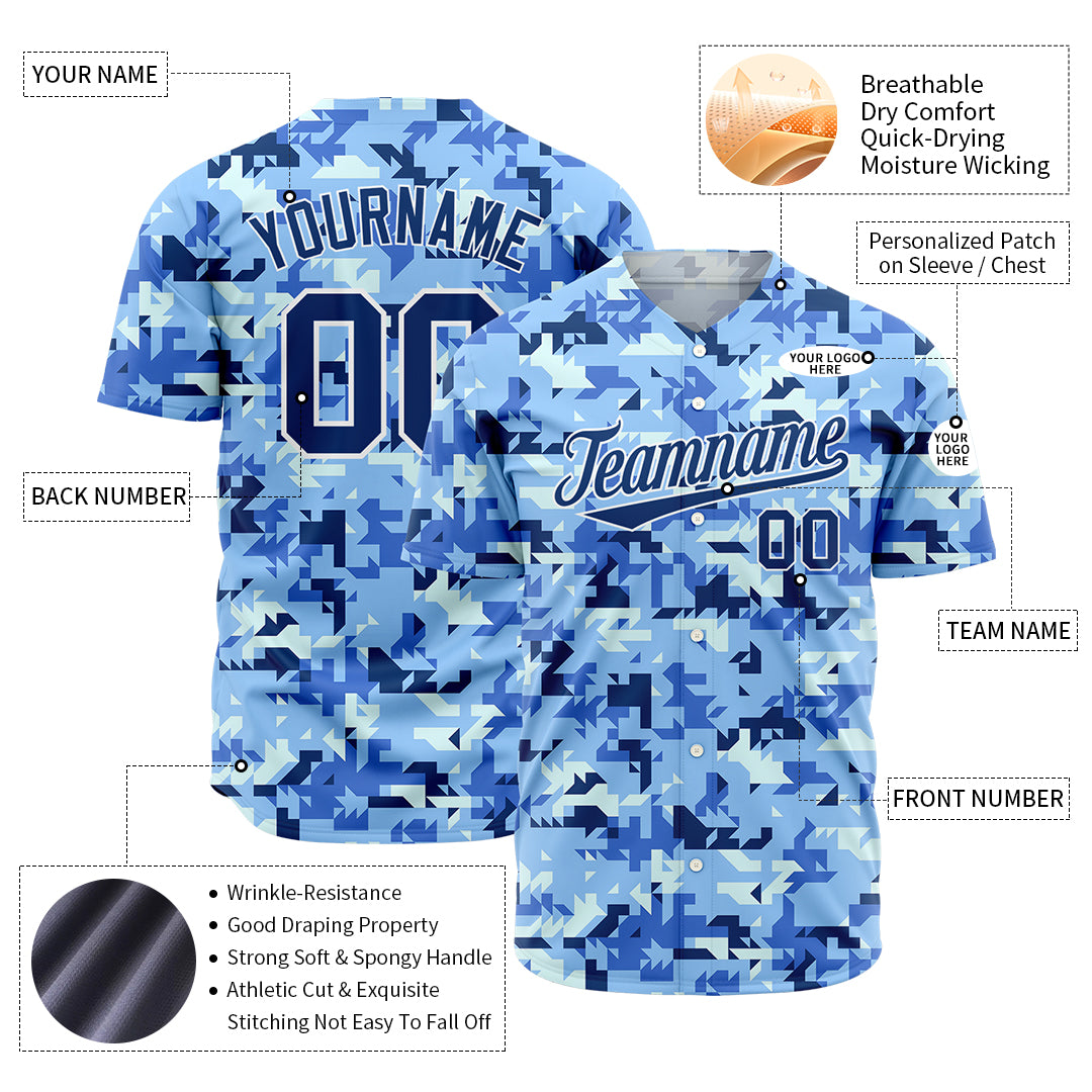 Custom Camo Baseball Jersey Full Button Down Fans Special Edition Authentic Shirt