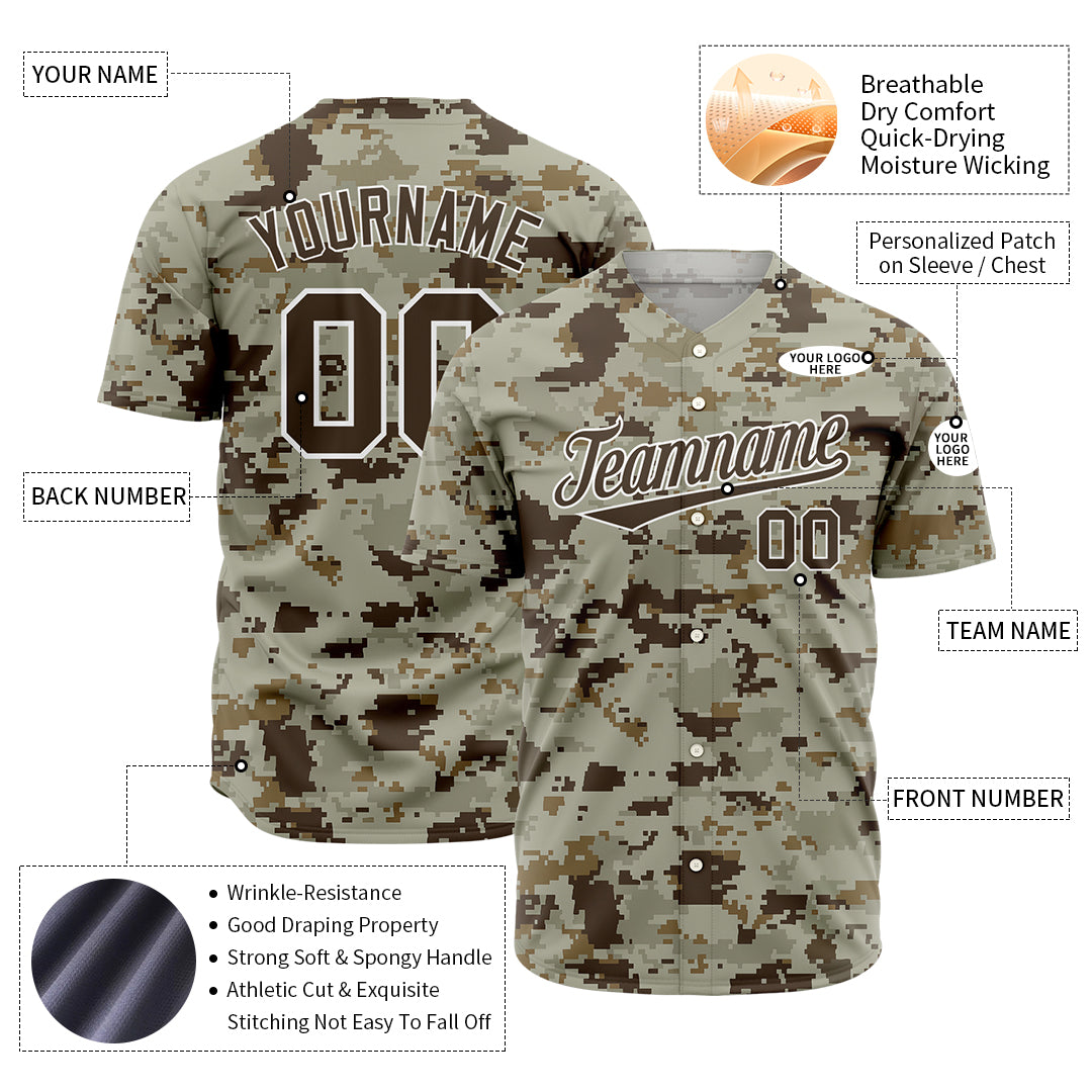 Custom Camo Baseball Jersey Full Button Down Fans Special Edition Authentic Shirt