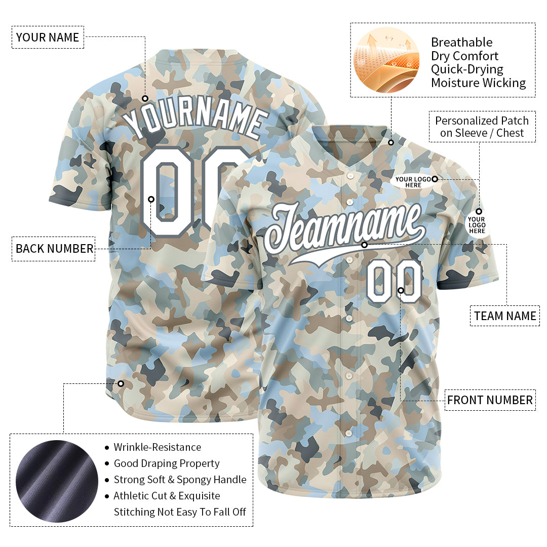 Custom Camo Baseball Jersey Full Button Down Fans Edition Authentic Shirt
