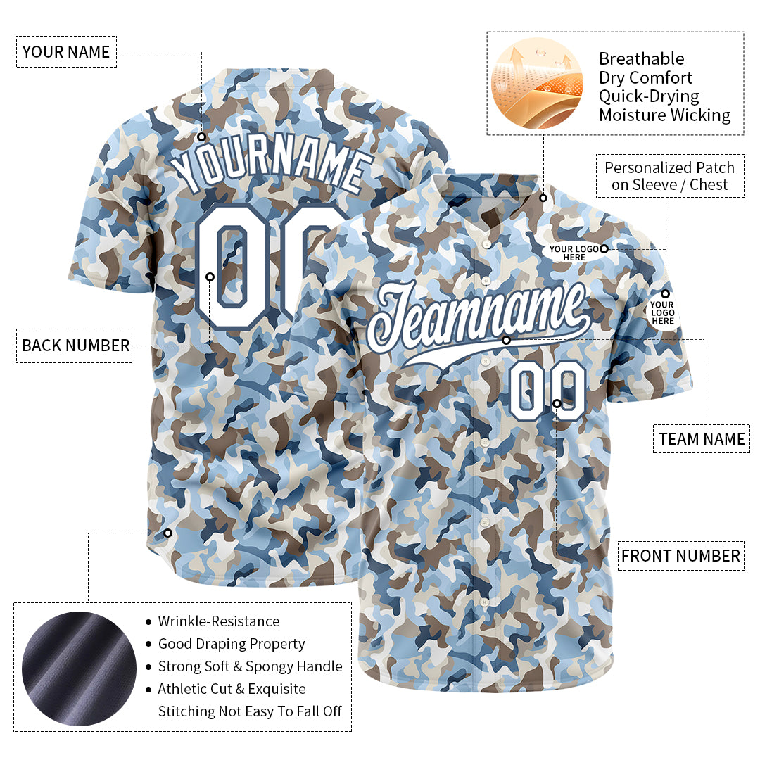 Custom Camo Baseball Jersey Full Button Down Fans Special Edition Authentic Sport Shirt