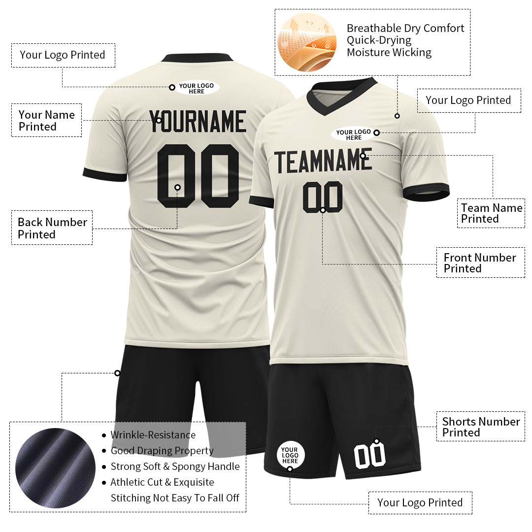Custom Cream Soccer Uniform For Adult Youth Fans Jersey