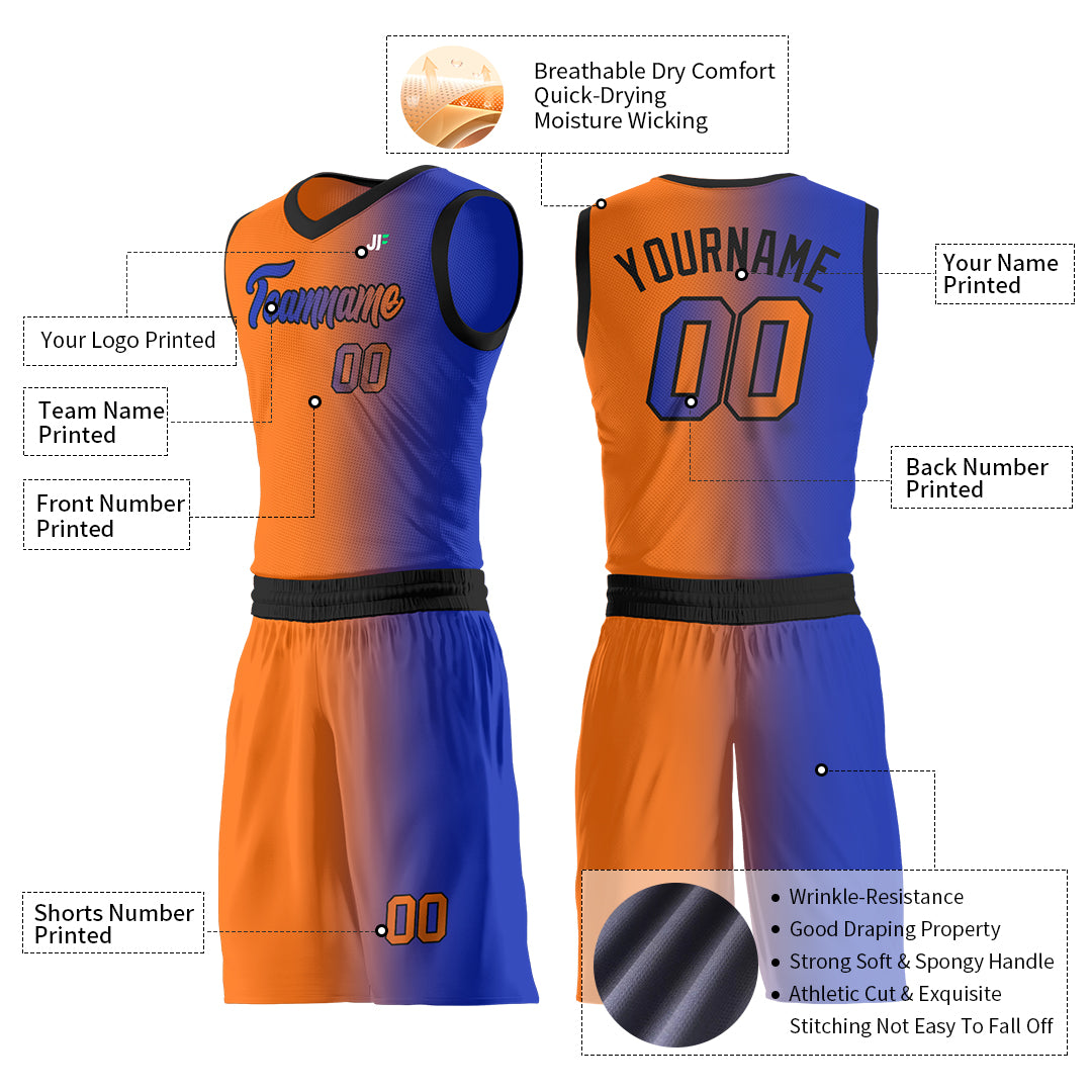 Custom Fade Orange Navy Basketball Uniform Print Athletic V Neck Mesh Jersey
