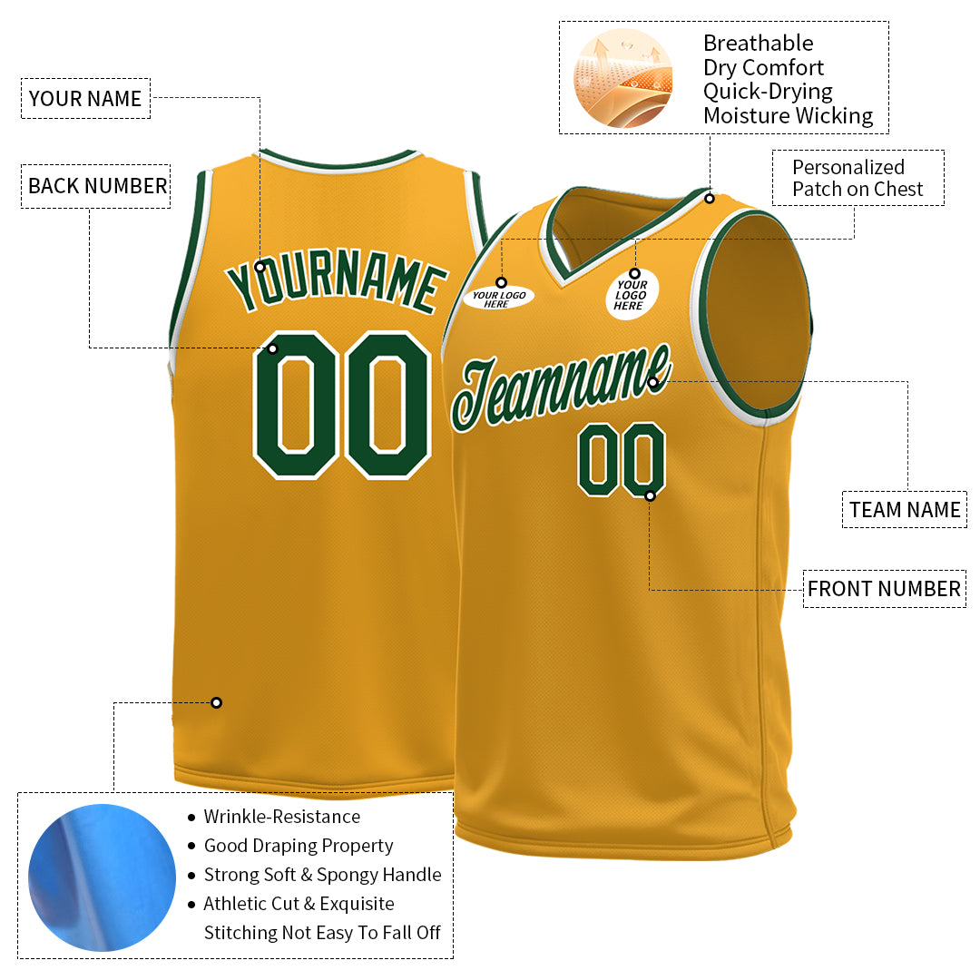 Personalize Gold Basketball Jersey Sports Team Shirt
