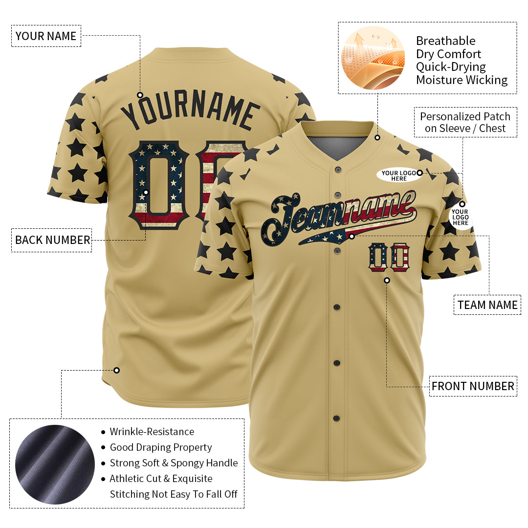 Custom Gold National USA Flag Two Tone Shirts Authentic Vintage Baseball Jersey