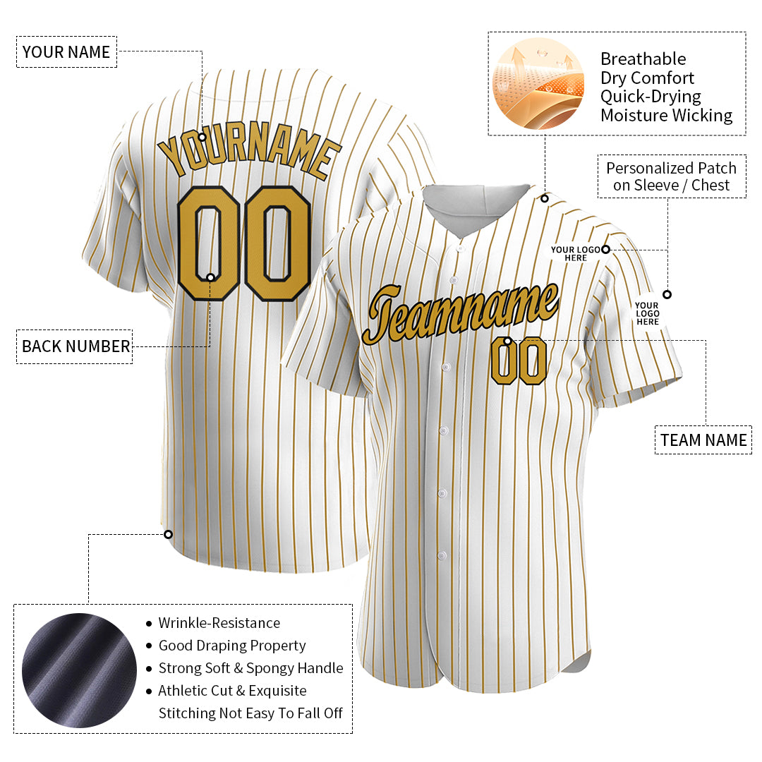 Custom Gold Pinstripe Baseball Jersey Authentic Button Down Vintage White Shirt