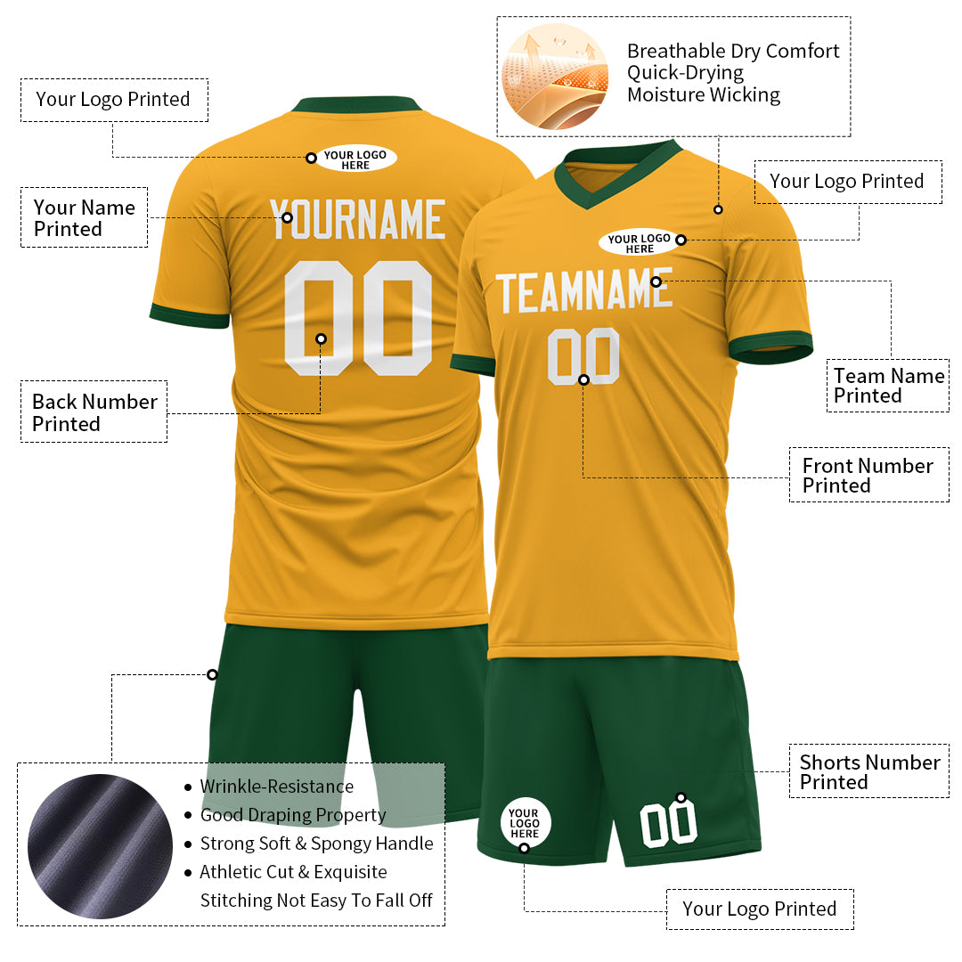 Custom Gold Soccer Uniform For Adult Youth Fans Jersey
