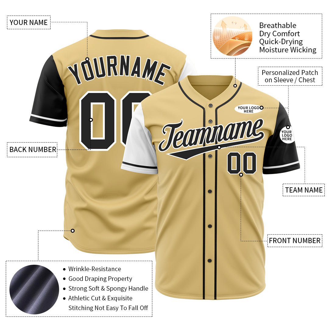 Custom Gold Two Tone Fashion Baseball Jersey Authentic Hip Hop Sportswear TShirt