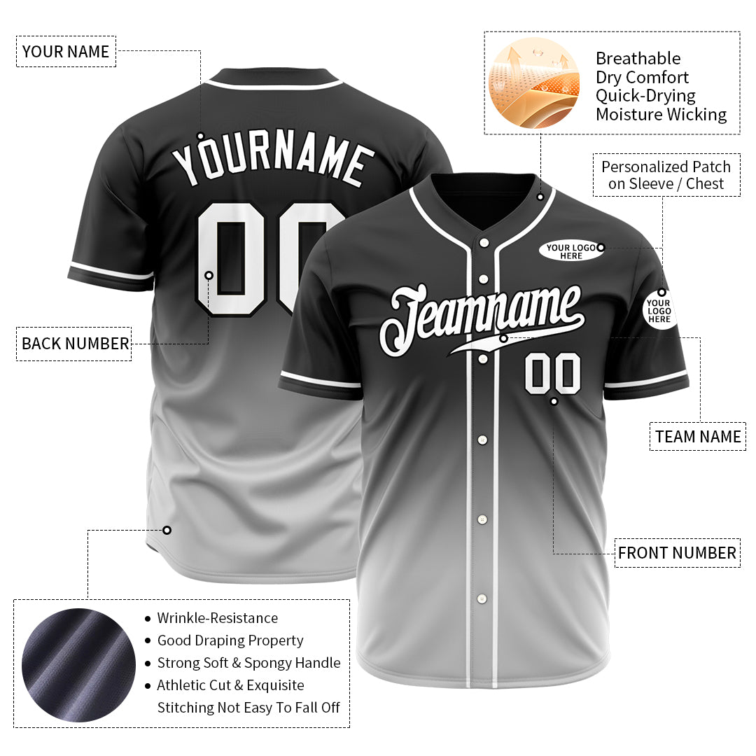Custom Gradient Black Gray Baseball Jersey Full Button Down Fans Special Edition Authentic Shirt