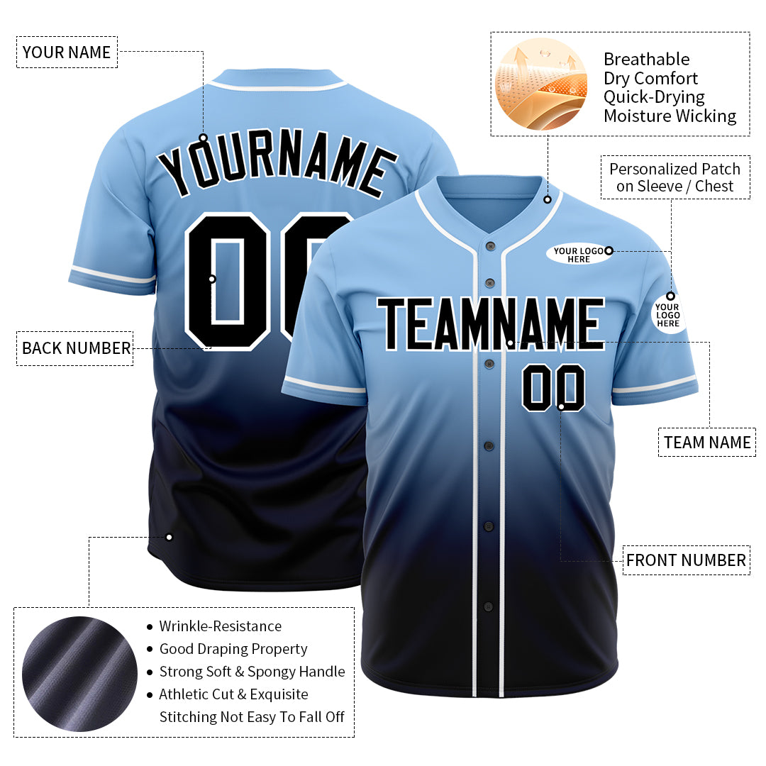 Custom Gradient Blue Baseball Jersey Full Button Down Fans Special Edition Authentic Shirt
