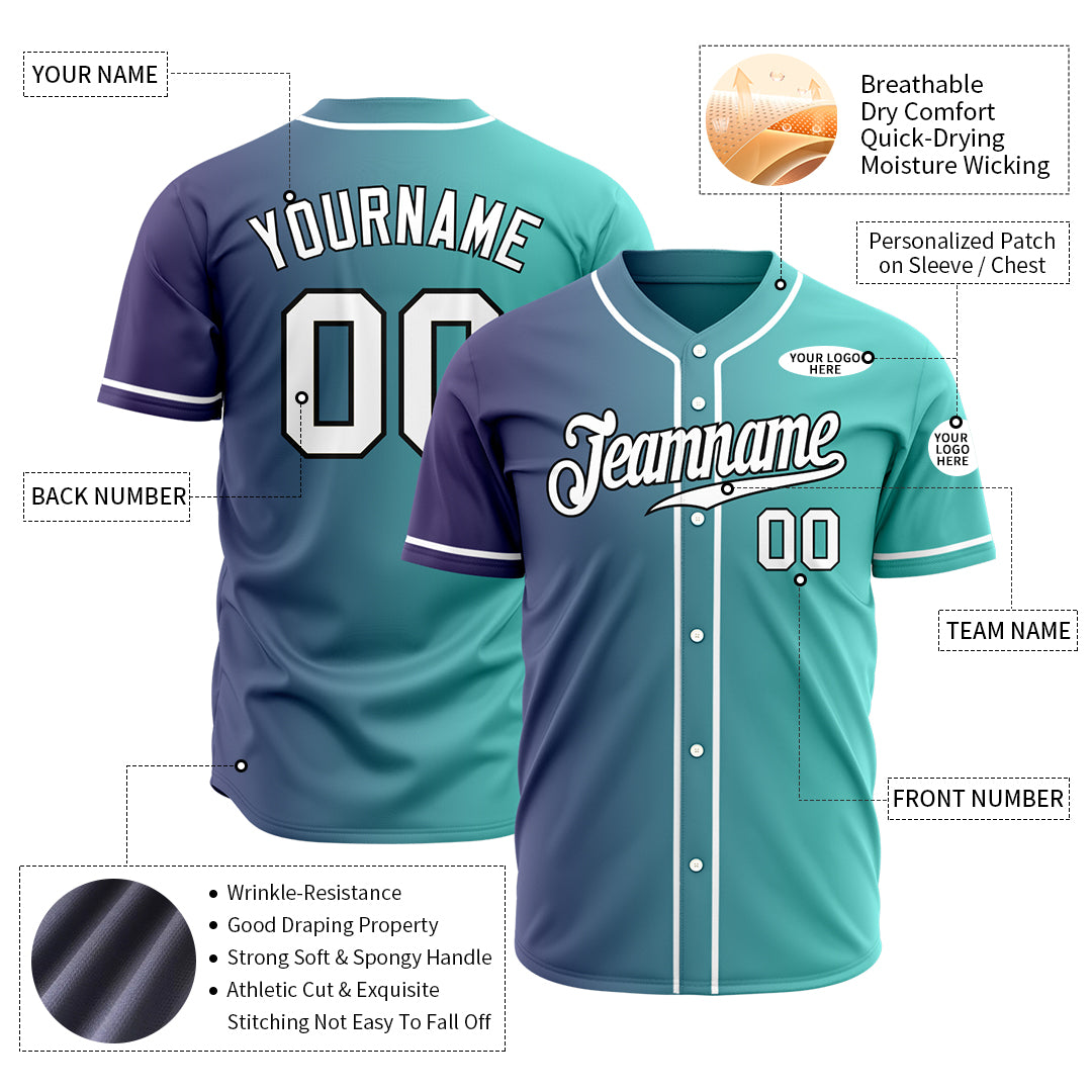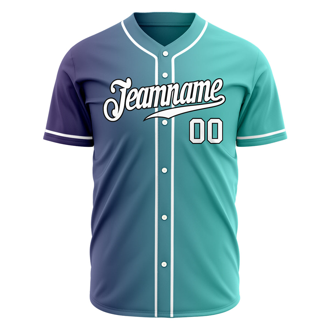 Custom Gradient Blue Teal Baseball Jersey Full Button Down Fans Special Edition Authentic Shirt