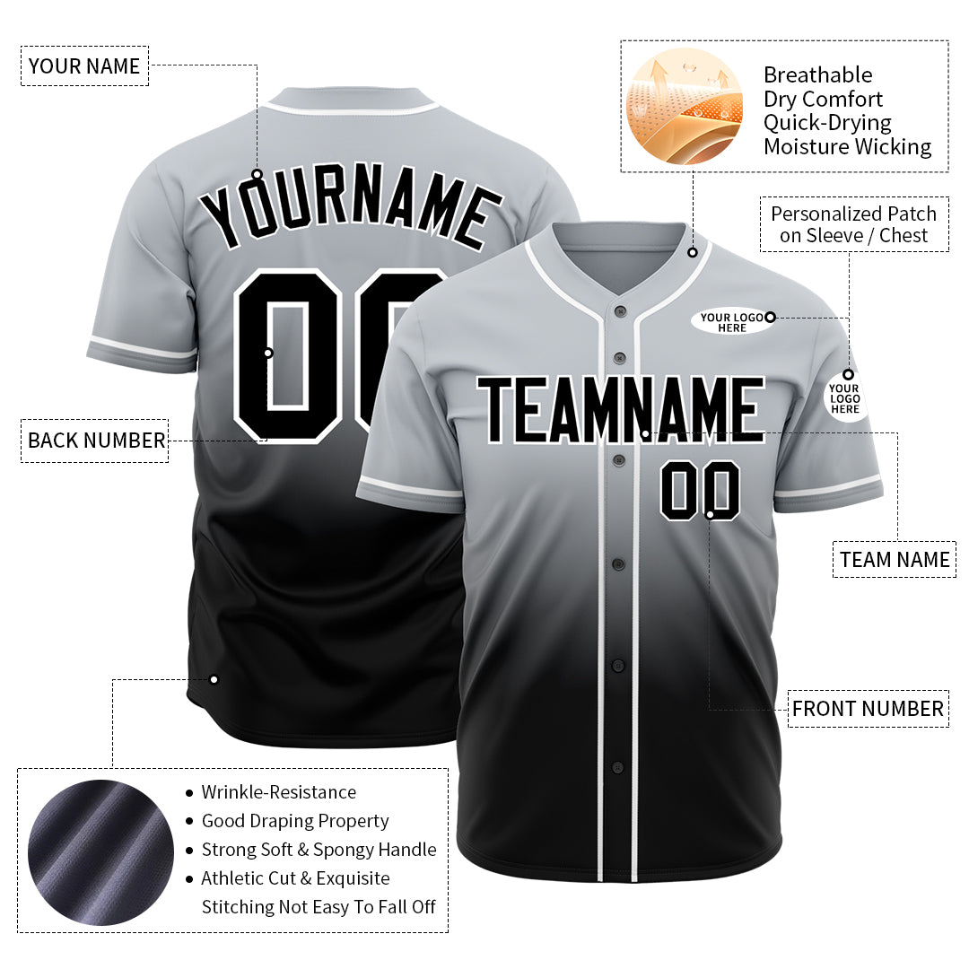 Custom Gradient Gray Baseball Jersey Full Button Down Fans Special Edition Authentic Shirt