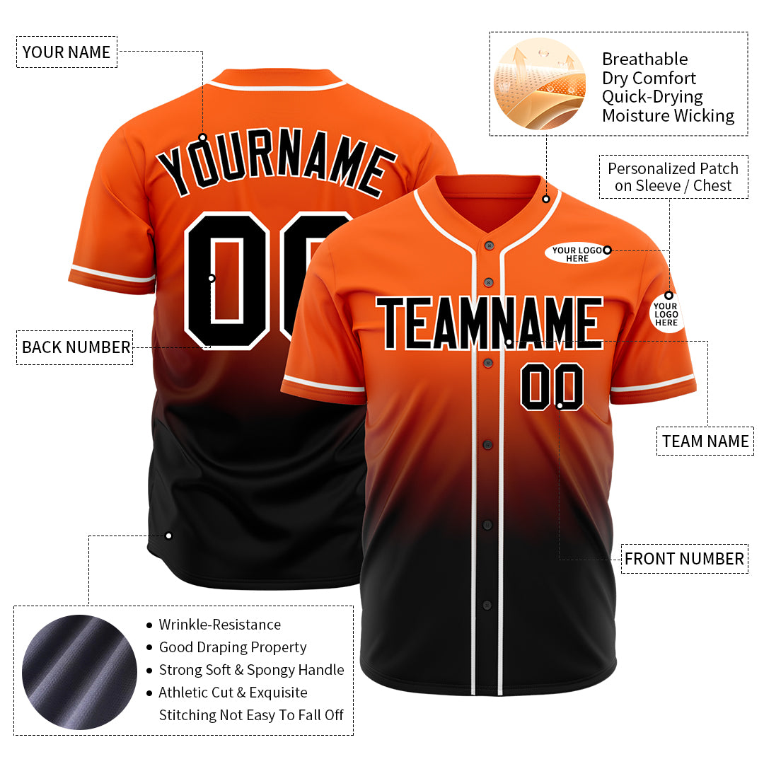 Custom Gradient Orange Baseball Jersey Full Button Down Fans Special Edition Authentic Shirt