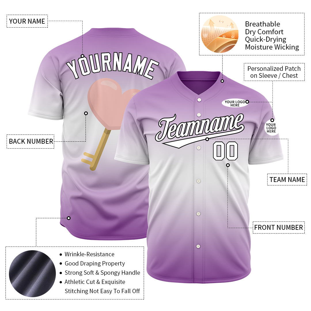 Custom Gradient Purple Key Valentine's Day Baseball Jersey Fans Special Edition Authentic Shirt
