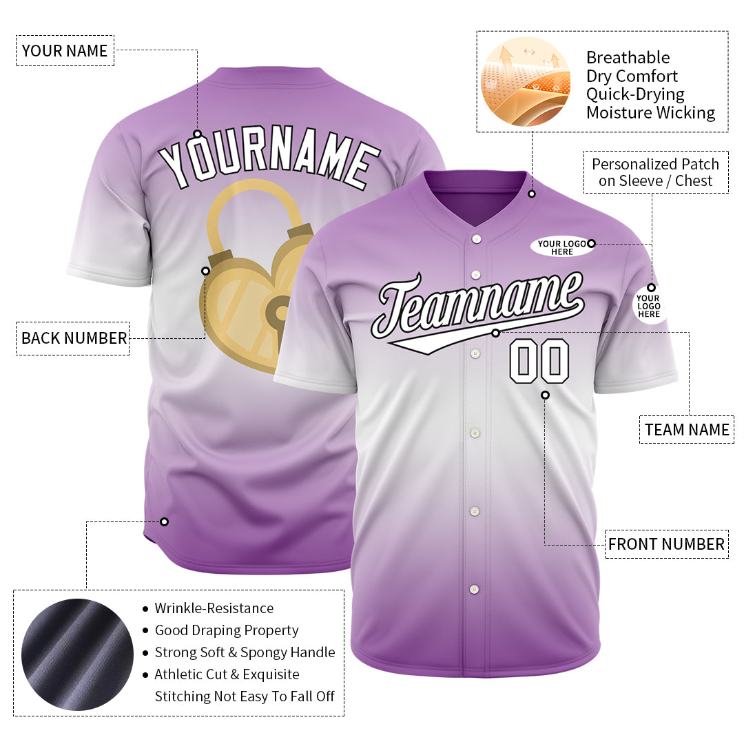 Custom Gradient Purple Valentine's Day Baseball Jersey Fans Special Edition Authentic Shirt