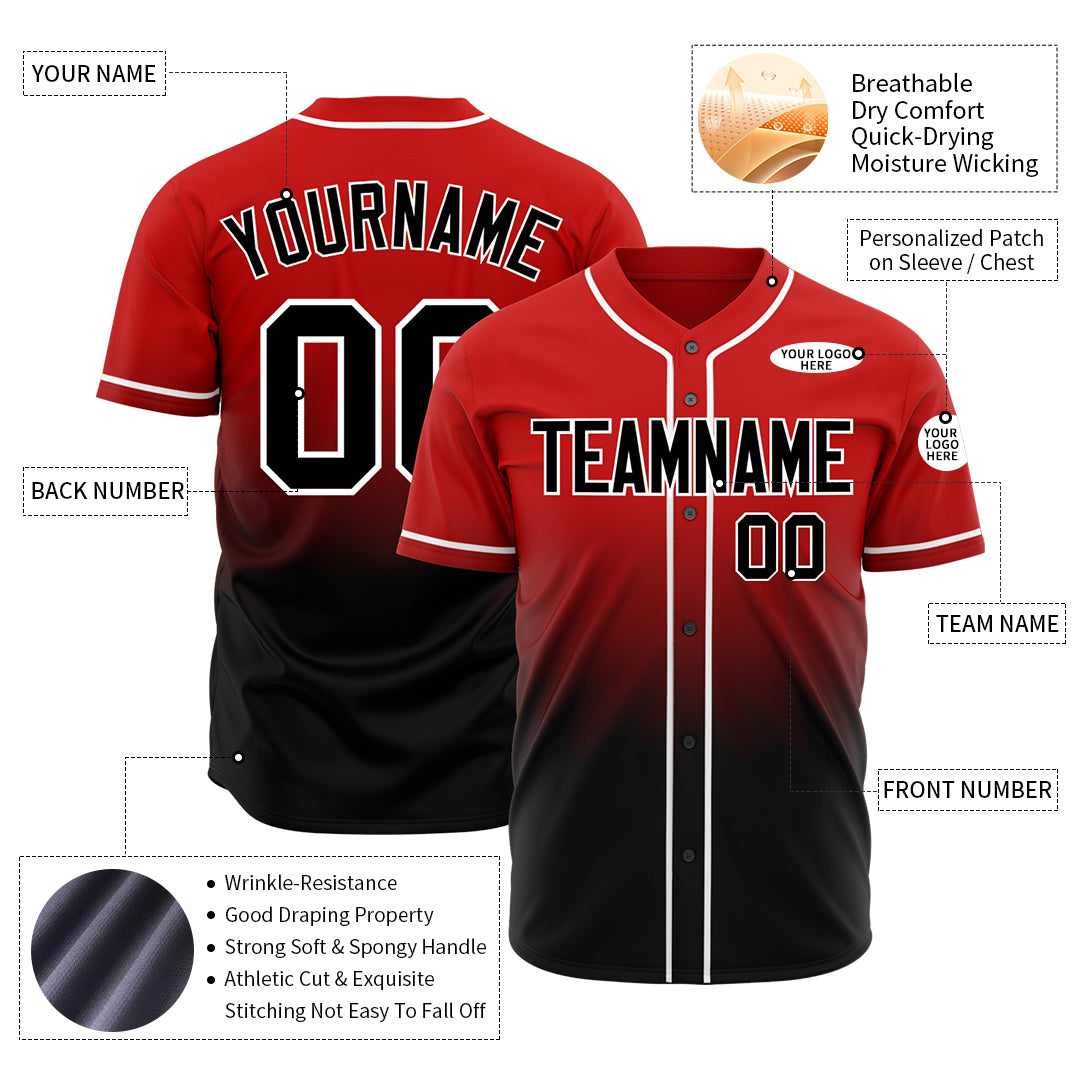 Custom Gradient Red Baseball Jersey Full Button Down Fans Special Edition Authentic Shirt